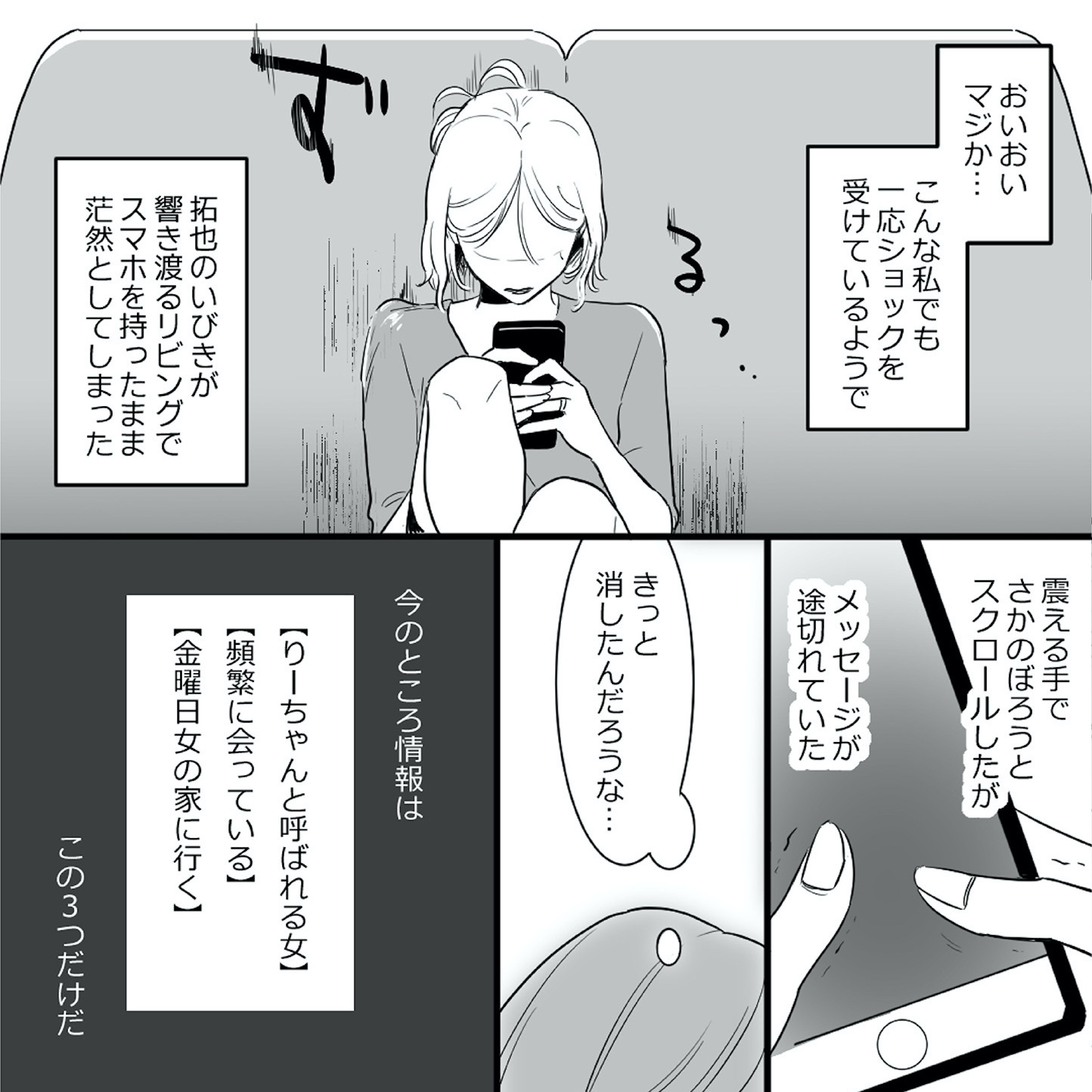 おいおいマジか…怪しい女とのDMのやりとりを見つける。夫はその女に頻繁に会っていることが発覚!【金曜に、夫を破滅させます #4】 2025.09.27 LOVE 金曜に、夫を破滅させます ずっと幸せだと思ってた 試し読みマンガ試し読みマンガ試し読み夫婦関係 ▶Renta!『金曜に、夫を破滅させます ずっと幸せだと思ってた』 ▶30日間無料▶ Amazonの読み放題をチェック! 【99円で2カ月間】 Audible が無制限で聴ける! ▶楽天KOBO 初回購入金額のポイント最大70倍! スポンサーリンク 次のページへ >> 1 2 3 4 【注目の記事】 1番対策が難しかった…!頬のたるみやほうれい線につながるNG食事習慣最後のひとつ 冬の寒さに負けない!そろそろ準備したい中綿アウター×【ユニクロ】バズりデニムの着こなし【40代の毎日コーデ】 【ユニクロ】カシミヤタッチニットで魅せる!旬のブラウンを効かせた洗練肩掛けテク【40代の毎日コーデ】 東大生が注意喚起!「鵜呑みにしてはいけない」SNSで「でたらめの受験情報」を発信する人の特徴とは 「東大受験が簡単!?」な難関私立高出身者。天才たちの受験勉強、その驚きの実態とは この記事は OTONA SALONE1 スポンサーリンク スポンサーリンク 【人気の関連記事】 【なぜどく#7 45歳・A子さん編】地方は独身男が少ない!40代でやっと気づいたこと 【なぜ彼女は独身なのか?40代独女の本音 ♯7】アラフォー独身のイラストレーターNobbyさんが、絶賛婚活中の編集長・アサミといっしょに、婚活中の独身女性と「私たちはな… 【なぜどく#8】42歳独女が月額10万のセレブ婚活サロンに登録した結果… 【なぜ彼女は独身なの?40代独女の本音 ♯8】アラフォー独身のイラストレーターNobbyさんが、絶賛婚活中の編集長・アサミといっしょに、婚活中の独身女性と「私たちはなぜ… 【なぜどく#13 45歳・ヨーコさん編】バリキャリ女子は、婚活に迷走する? アラフォー独身のイラストレーターNobbyさんが、絶賛婚活中の編集長・アサミといっしょに、婚活中の独身女性と「私たちはなぜ婚活し続けるのか」まったり語り合う会のレポ…