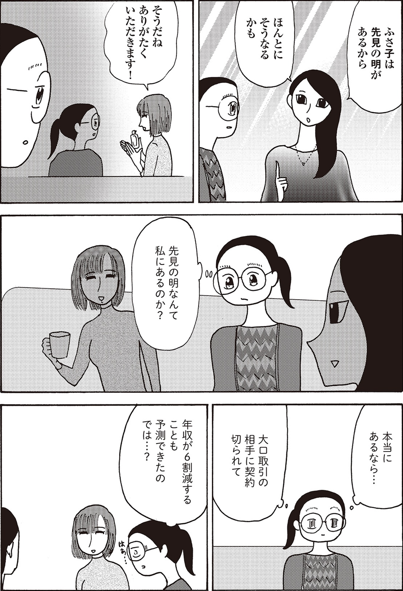 40歳・フリーデザイナーの丸山ふさ子。 夫との攻防戦の末、「共働きだけど夫のほうが家事育児多め」という関係にやっとたどり着く。バリキャリ会社員のまい、起業家のかおりと頻繁に集まっては語り合うも、彼女たちも40代ならではの大問題に決着中。仕事、家庭、そして性のこと。見て見ぬふりしてきたモノが、気づけば大渋滞! もがきながらも前に進む彼女たちに、明るい未来は訪れるの?