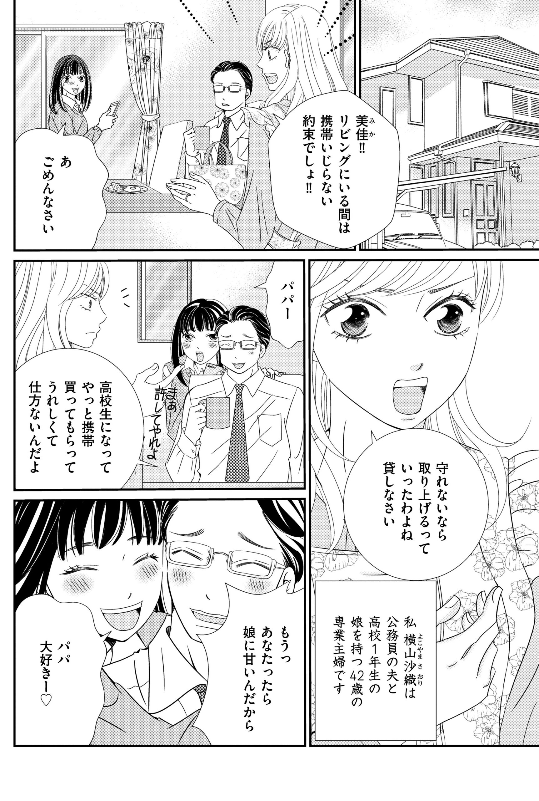 携帯はいくつから持たせる?「進学校に合格したら」を条件に携帯を持たせた私【SNS監視ママ #1】 2025.09.12 LIFE 試し読みマンガSNS監視ママ 試し読みマンガ試し読み 「子供は親の言うこと聞いてりゃ間違いないんだから」と娘を徹底管理する教育ママ。 だけど、スマホを娘に買い与えたら最後、娘らしき非行JKのSNSアカウントを監視せずにはいられない……!! そのほか、シンママ同士のマウンティング合戦、妊活バトルなど業の深い女たちのイザコザ5作! ※本記事ははやしだちひろ著の電子書籍『SNS監視ママ ~毒親の異常な習慣~』から一部抜粋・編集しました。 ▶Renta!『SNS監視ママ ~毒親の異常な習慣~1』 ▶30日間無料▶ Amazonの読み放題をチェック! 【99円で2カ月間】 Audible が無制限で聴ける! ▶楽天KOBO 初回購入金額のポイント最大70倍! スポンサーリンク 続きを読む 次のページへ >> 1 2 3 【注目の記事】 1番対策が難しかった…!頬のたるみやほうれい線につながるNG食事習慣最後のひとつ 冬の寒さに負けない!そろそろ準備したい中綿アウター×【ユニクロ】バズりデニムの着こなし【40代の毎日コーデ】 【ユニクロ】カシミヤタッチニットで魅せる!旬のブラウンを効かせた洗練肩掛けテク【40代の毎日コーデ】 東大生が注意喚起!「鵜呑みにしてはいけない」SNSで「でたらめの受験情報」を発信する人の特徴とは 「東大受験が簡単!?」な難関私立高出身者。天才たちの受験勉強、その驚きの実態とは この記事は OTONA SALONE1 スポンサーリンク スポンサーリンク 【人気の関連記事】 40代。もう私、いつ死んだっていい気がするけど | あした死ぬには、#1 突然の病気。更年期障害。取れない疲労、お金の不安、これからの人生の迷い……。40代がぶち当たる「壁」をあまりにもリアルに描き出し、熱く静かな共感をさらった雁須磨子さ… 人前では「完璧な夫婦」を演じる夫。普段は私を無視してるって、誰も知らない【女40代はおそろしい#11】 40歳・フリーデザイナーの丸山ふさ子。 夫との攻防戦の末、「共働きだけど夫のほうが家事育児多め」という関係にやっとたどり着く。バリキャリ会社員のまい、起業家のかお… 年齢、たまに忘れてない?アラフォーあるあるが「共感しかない」と話題 「最近、若い頃と比べて何かが違う……」そんなモヤモヤを抱えているアラフォーのみなさん、必見!イラストレーターのRingoman(@ringo_fashion)さんがインスタグラムに投稿…