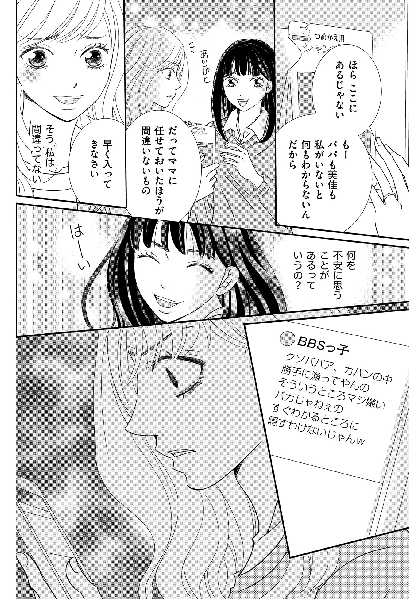 「薄味のエサ」「クソババア」「裸にネックレス」…違う!この垢は娘じゃない!【SNS監視ママ #5】 2025.09.14 LIFE マンガSNS監視ママ 試し読みマンガ試し読み試し読み 「子供は親の言うこと聞いてりゃ間違いないんだから」と娘を徹底管理する教育ママ。 だけど、スマホを娘に買い与えたら最後、娘らしき非行JKのSNSアカウントを監視せずにはいられない……!! そのほか、シンママ同士のマウンティング合戦、妊活バトルなど業の深い女たちのイザコザ5作! ※本記事ははやしだちひろ著の電子書籍『SNS監視ママ ~毒親の異常な習慣~』から一部抜粋・編集しました。 ▶Renta!『SNS監視ママ ~毒親の異常な習慣~1』 ▶30日間無料▶ Amazonの読み放題をチェック! 【99円で2カ月間】 Audible が無制限で聴ける! ▶楽天KOBO 初回購入金額のポイント最大70倍! スポンサーリンク 続きを読む 次のページへ >> 1 2 3 【注目の記事】 1番対策が難しかった…!頬のたるみやほうれい線につながるNG食事習慣最後のひとつ 冬の寒さに負けない!そろそろ準備したい中綿アウター×【ユニクロ】バズりデニムの着こなし【40代の毎日コーデ】 【ユニクロ】カシミヤタッチニットで魅せる!旬のブラウンを効かせた洗練肩掛けテク【40代の毎日コーデ】 東大生が注意喚起!「鵜呑みにしてはいけない」SNSで「でたらめの受験情報」を発信する人の特徴とは 「東大受験が簡単!?」な難関私立高出身者。天才たちの受験勉強、その驚きの実態とは この記事は OTONA SALONE1 スポンサーリンク スポンサーリンク 【人気の関連記事】 40代。もう私、いつ死んだっていい気がするけど | あした死ぬには、#1 突然の病気。更年期障害。取れない疲労、お金の不安、これからの人生の迷い……。40代がぶち当たる「壁」をあまりにもリアルに描き出し、熱く静かな共感をさらった雁須磨子さ… 人前では「完璧な夫婦」を演じる夫。普段は私を無視してるって、誰も知らない【女40代はおそろしい#11】 40歳・フリーデザイナーの丸山ふさ子。 夫との攻防戦の末、「共働きだけど夫のほうが家事育児多め」という関係にやっとたどり着く。バリキャリ会社員のまい、起業家のかお… 年齢、たまに忘れてない?アラフォーあるあるが「共感しかない」と話題 「最近、若い頃と比べて何かが違う……」そんなモヤモヤを抱えているアラフォーのみなさん、必見!イラストレーターのRingoman(@ringo_fashion)さんがインスタグラムに投稿…