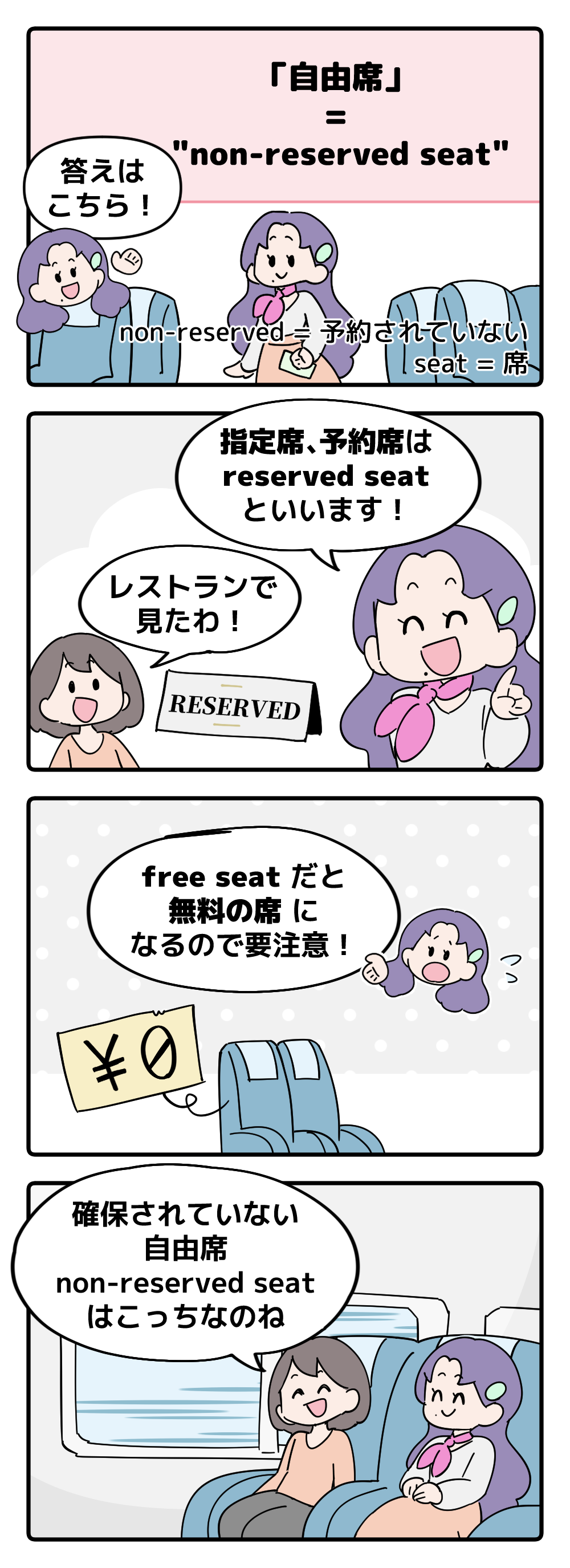 マンガでわかる!英語で「自由席」はなんて言う?