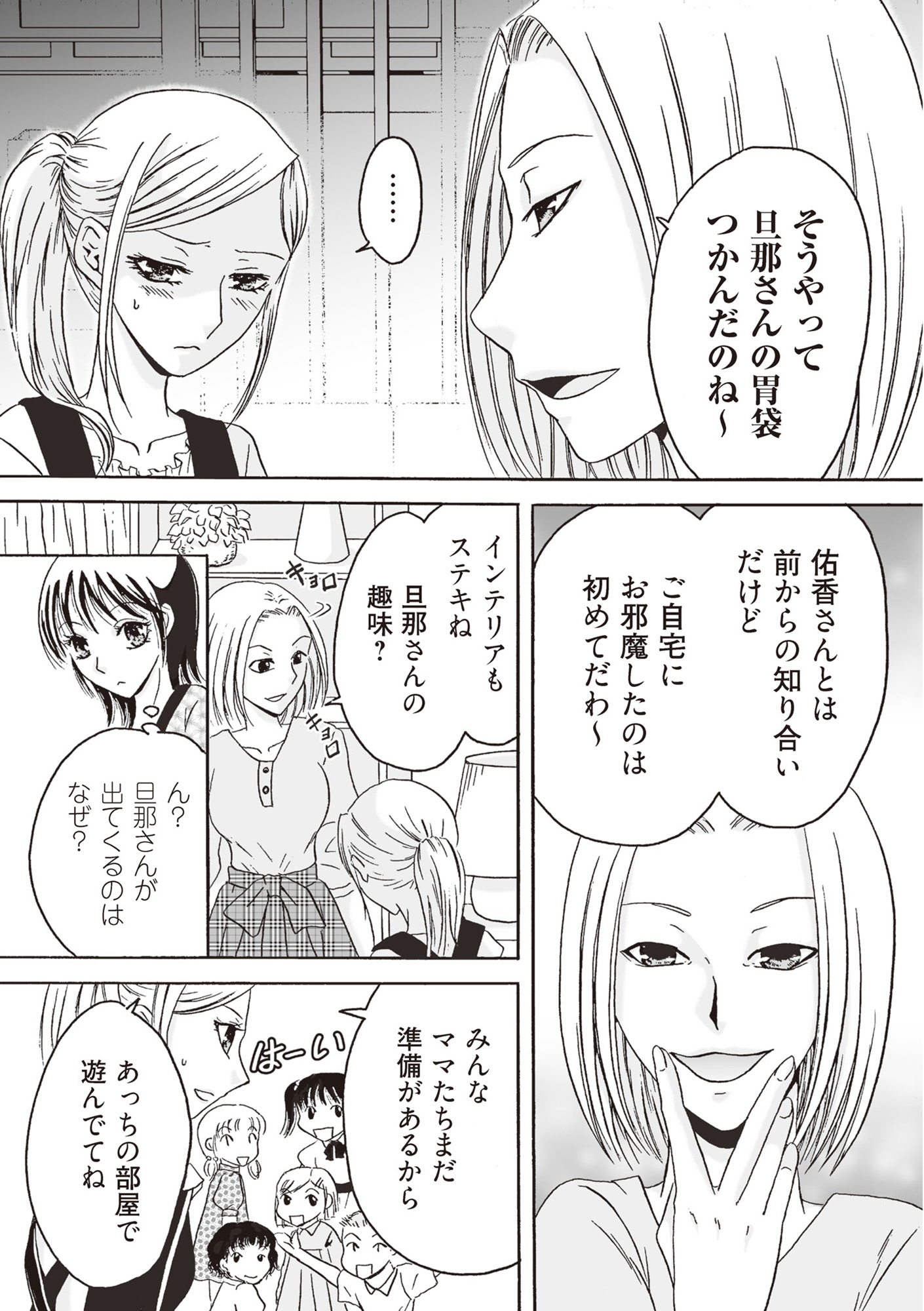 ママ友ランチの笑顔は仮面?妻が察したマンション内の不穏な空気【不倫マンション 住人たちの乱れた秘密 #3】 2025.10.11 LIFE 不倫マンガ試し読み不倫マンション 住人たちの乱れた秘密 試し読みマンガ夫婦関係試し読み ▶Renta!『不倫マンション 住人たちの乱れた秘密』 ▶30日間無料▶ Amazonの読み放題をチェック! 【99円で2カ月間】 Audible が無制限で聴ける! ▶楽天KOBO 初回購入金額のポイント最大70倍! スポンサーリンク 次のページへ >> 1 2 3 【注目の記事】 1番対策が難しかった…!頬のたるみやほうれい線につながるNG食事習慣最後のひとつ 冬の寒さに負けない!そろそろ準備したい中綿アウター×【ユニクロ】バズりデニムの着こなし【40代の毎日コーデ】 【ユニクロ】カシミヤタッチニットで魅せる!旬のブラウンを効かせた洗練肩掛けテク【40代の毎日コーデ】 東大生が注意喚起!「鵜呑みにしてはいけない」SNSで「でたらめの受験情報」を発信する人の特徴とは 「東大受験が簡単!?」な難関私立高出身者。天才たちの受験勉強、その驚きの実態とは この記事は OTONA SALONE4 スポンサーリンク スポンサーリンク 【人気の関連記事】 小泉今日子、前代未聞の不倫宣言でピンチを迎えたのは誰か? みなさんは”逆張り”という言葉をお聞きになったことがありますか?これは株式投資用語で、株価格が急変したとき、あえて流れに逆らって売買をすることを言います。奇しくも… 40代。もう私、いつ死んだっていい気がするけど | あした死ぬには、#1 突然の病気。更年期障害。取れない疲労、お金の不安、これからの人生の迷い……。40代がぶち当たる「壁」をあまりにもリアルに描き出し、熱く静かな共感をさらった雁須磨子さ… 人前では「完璧な夫婦」を演じる夫。普段は私を無視してるって、誰も知らない【女40代はおそろしい#11】 40歳・フリーデザイナーの丸山ふさ子。 夫との攻防戦の末、「共働きだけど夫のほうが家事育児多め」という関係にやっとたどり着く。バリキャリ会社員のまい、起業家のかお…