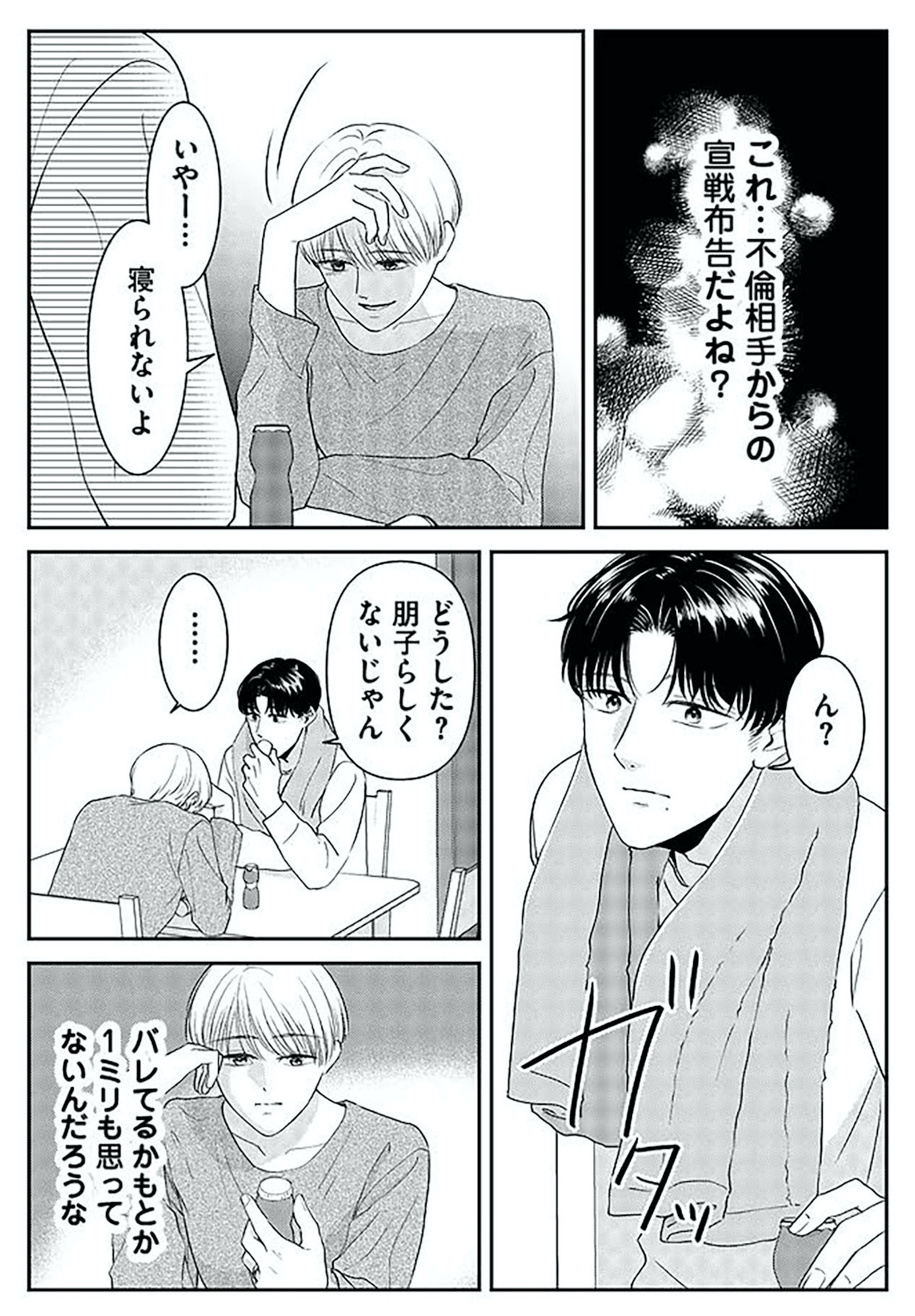 香水にコスメ…これって不倫相手からの宣戦布告?そして夫が結婚指輪を外していることに気づき…【今日も浮つく、あなたは燃える #3】 2025.11.10 LOVE サレ妻マンガ試し読みマンガ不倫今日も浮つく、あなたは燃える サレ妻が不倫現場に凸る話 試し読み試し読み ▶Renta!『今日も浮つく、あなたは燃える サレ妻が不倫現場に凸る話』 ▶30日間無料▶ Amazonの読み放題をチェック! 【99円で2カ月間】 Audible が無制限で聴ける! ▶楽天KOBO 初回購入金額のポイント最大70倍! スポンサーリンク 次のページへ >> 1 2 3 4 【注目の記事】 1番対策が難しかった…!頬のたるみやほうれい線につながるNG食事習慣最後のひとつ 冬の寒さに負けない!そろそろ準備したい中綿アウター×【ユニクロ】バズりデニムの着こなし【40代の毎日コーデ】 【ユニクロ】カシミヤタッチニットで魅せる!旬のブラウンを効かせた洗練肩掛けテク【40代の毎日コーデ】 東大生が注意喚起!「鵜呑みにしてはいけない」SNSで「でたらめの受験情報」を発信する人の特徴とは 「東大受験が簡単!?」な難関私立高出身者。天才たちの受験勉強、その驚きの実態とは この記事は OTONA SALONE1 スポンサーリンク スポンサーリンク 【人気の関連記事】 ハマったら危険!不倫上手な男たちが絶対にしない8つのこと 2016年も残すところあと少しですが、今年はとにかく芸能人の不倫ネタが多かった印象。どうして女性は、傷つくのがわかっているのに不倫に走ってしまうのか。大人の女性たち… 【なぜどく#7 45歳・A子さん編】地方は独身男が少ない!40代でやっと気づいたこと 【なぜ彼女は独身なのか?40代独女の本音 ♯7】アラフォー独身のイラストレーターNobbyさんが、絶賛婚活中の編集長・アサミといっしょに、婚活中の独身女性と「私たちはな… 【なぜどく#8】42歳独女が月額10万のセレブ婚活サロンに登録した結果… 【なぜ彼女は独身なの?40代独女の本音 ♯8】アラフォー独身のイラストレーターNobbyさんが、絶賛婚活中の編集長・アサミといっしょに、婚活中の独身女性と「私たちはなぜ…