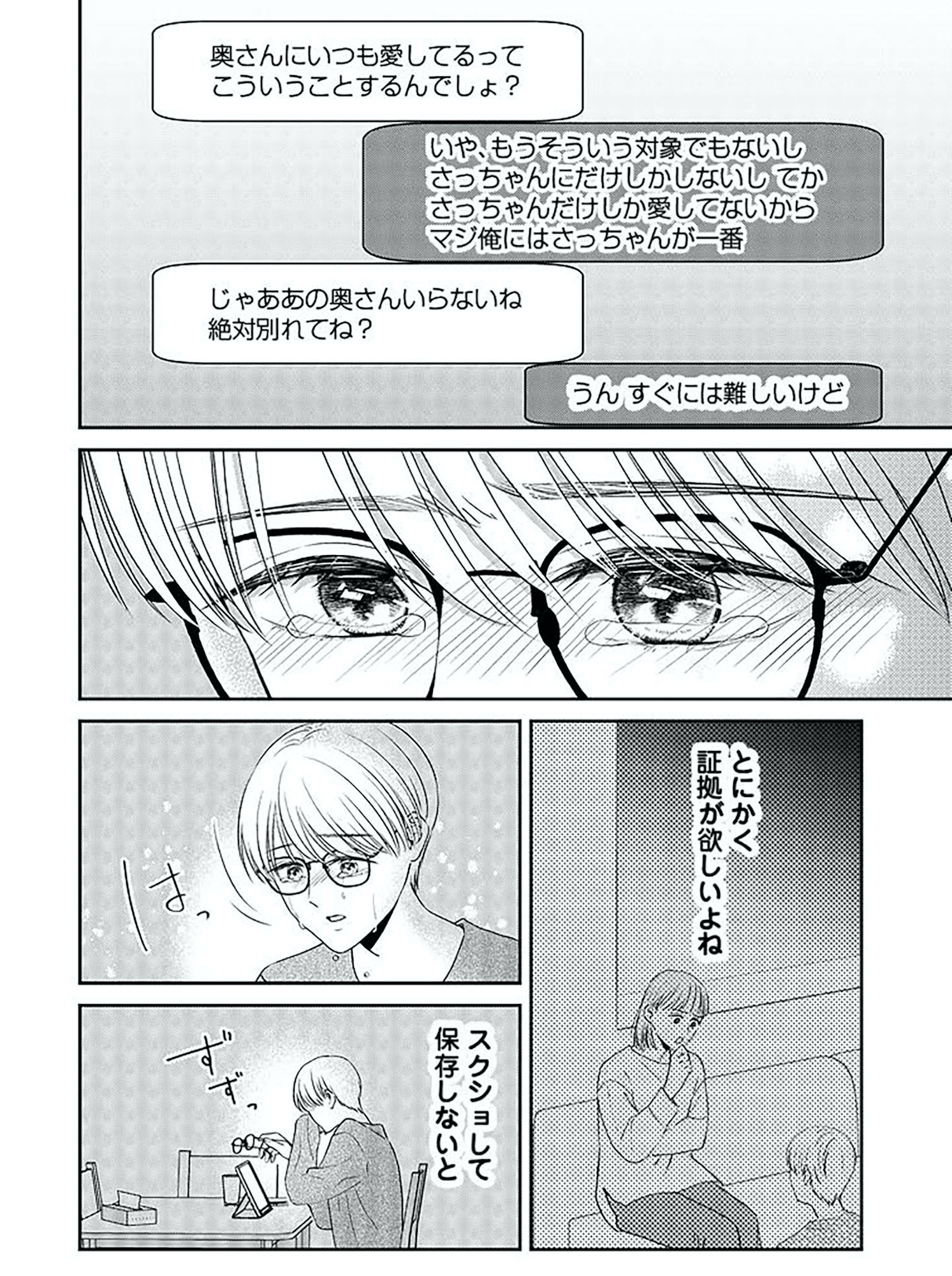 出るわ出るわ「不倫の証拠」が!涙が止まらない…夫のスマホを確認すると「真っ黒」だった【今日も浮つく、あなたは燃える #4】 2025.11.11 LOVE マンガ試し読みサレ妻今日も浮つく、あなたは燃える サレ妻が不倫現場に凸る話 試し読みマンガ試し読み不倫 ▶Renta!『今日も浮つく、あなたは燃える サレ妻が不倫現場に凸る話』 ▶30日間無料▶ Amazonの読み放題をチェック! 【99円で2カ月間】 Audible が無制限で聴ける! ▶楽天KOBO 初回購入金額のポイント最大70倍! スポンサーリンク 次のページへ >> 1 2 3 4 【注目の記事】 1番対策が難しかった…!頬のたるみやほうれい線につながるNG食事習慣最後のひとつ 冬の寒さに負けない!そろそろ準備したい中綿アウター×【ユニクロ】バズりデニムの着こなし【40代の毎日コーデ】 【ユニクロ】カシミヤタッチニットで魅せる!旬のブラウンを効かせた洗練肩掛けテク【40代の毎日コーデ】 東大生が注意喚起!「鵜呑みにしてはいけない」SNSで「でたらめの受験情報」を発信する人の特徴とは 「東大受験が簡単!?」な難関私立高出身者。天才たちの受験勉強、その驚きの実態とは この記事は OTONA SALONE1 スポンサーリンク スポンサーリンク 【人気の関連記事】 ハマったら危険!不倫上手な男たちが絶対にしない8つのこと 2016年も残すところあと少しですが、今年はとにかく芸能人の不倫ネタが多かった印象。どうして女性は、傷つくのがわかっているのに不倫に走ってしまうのか。大人の女性たち… 【なぜどく#7 45歳・A子さん編】地方は独身男が少ない!40代でやっと気づいたこと 【なぜ彼女は独身なのか?40代独女の本音 ♯7】アラフォー独身のイラストレーターNobbyさんが、絶賛婚活中の編集長・アサミといっしょに、婚活中の独身女性と「私たちはな… 【なぜどく#8】42歳独女が月額10万のセレブ婚活サロンに登録した結果… 【なぜ彼女は独身なの?40代独女の本音 ♯8】アラフォー独身のイラストレーターNobbyさんが、絶賛婚活中の編集長・アサミといっしょに、婚活中の独身女性と「私たちはなぜ…