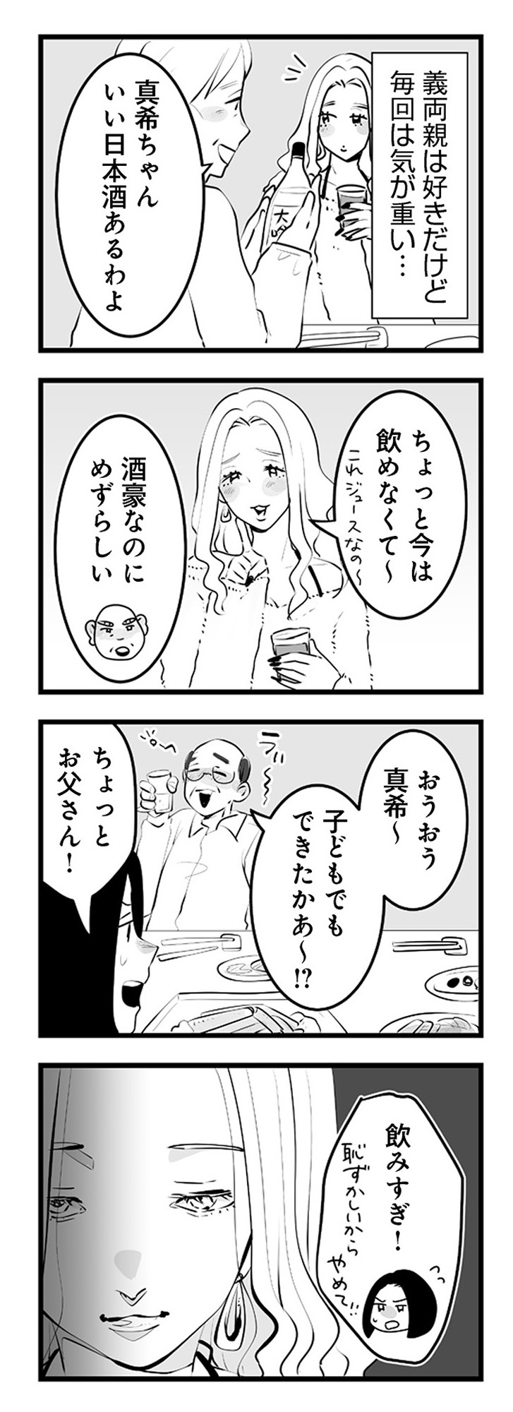 跡継ぎを期待する義両親の前で…お酒を控えた酒豪の姉がまさかの爆弾発言!【その不倫、地獄行きです! #5】