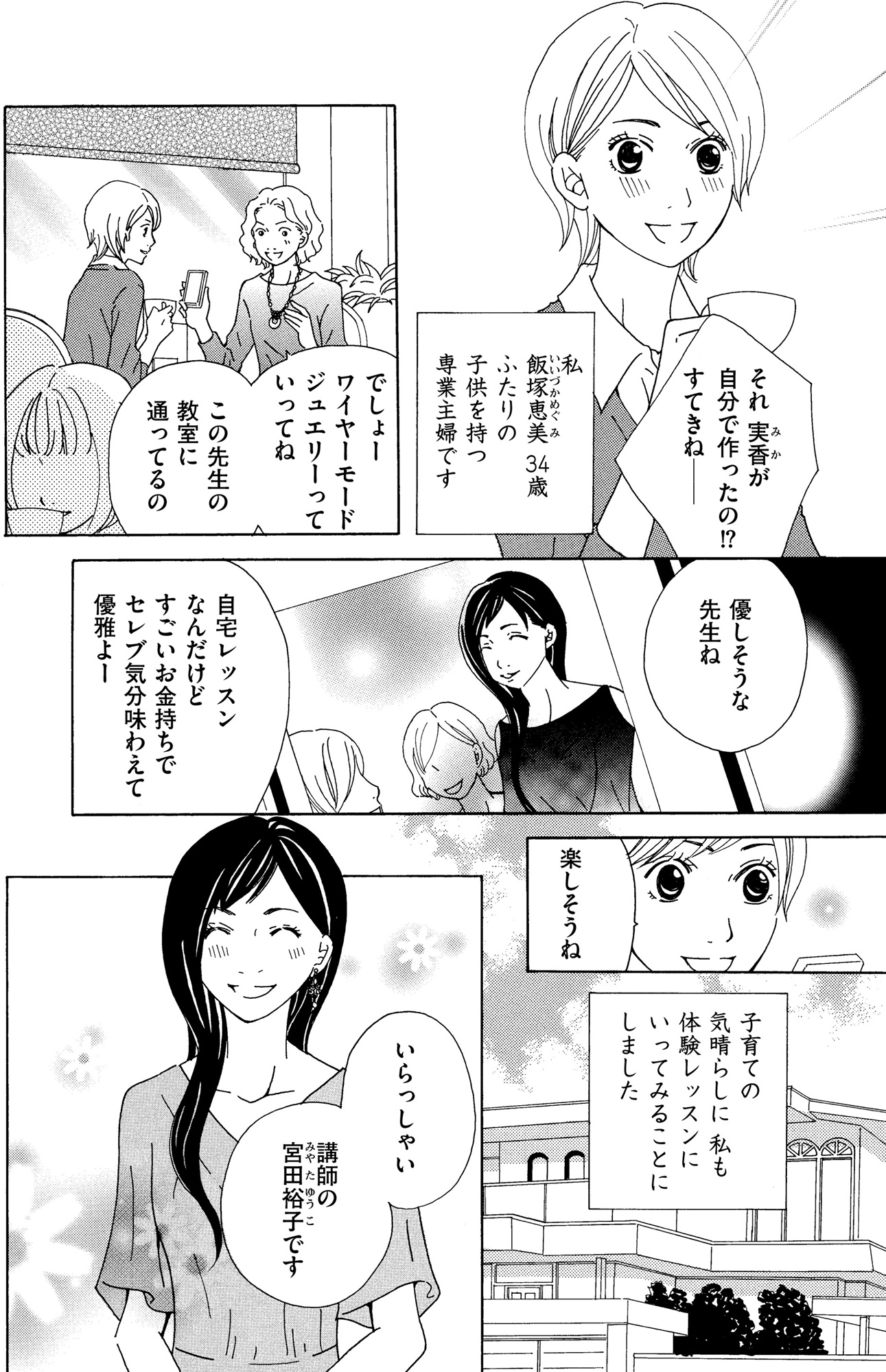 ワイヤーモードジュエリーの自宅レッスンへ。講師がセレブすぎ!【SNS監視ママ #34】 2025.10.03 LIFE マンガ試し読みSNS監視ママ 試し読み試し読みマンガ 「子供は親の言うこと聞いてりゃ間違いないんだから」と娘を徹底管理する教育ママ。 だけど、スマホを娘に買い与えたら最後、娘らしき非行JKのSNSアカウントを監視せずにはいられない……!! そのほか、シンママ同士のマウンティング合戦、妊活バトルなど業の深い女たちのイザコザ5作! ※本記事ははやしだちひろ著の電子書籍『SNS監視ママ ~毒親の異常な習慣~』から一部抜粋・編集しました。 ▶Renta!『SNS監視ママ ~毒親の異常な習慣~1』 ▶30日間無料▶ Amazonの読み放題をチェック! 【99円で2カ月間】 Audible が無制限で聴ける! ▶楽天KOBO 初回購入金額のポイント最大70倍! スポンサーリンク 続きを読む 次のページへ >> 1 2 3 【注目の記事】 1番対策が難しかった…!頬のたるみやほうれい線につながるNG食事習慣最後のひとつ 冬の寒さに負けない!そろそろ準備したい中綿アウター×【ユニクロ】バズりデニムの着こなし【40代の毎日コーデ】 【ユニクロ】カシミヤタッチニットで魅せる!旬のブラウンを効かせた洗練肩掛けテク【40代の毎日コーデ】 東大生が注意喚起!「鵜呑みにしてはいけない」SNSで「でたらめの受験情報」を発信する人の特徴とは 「東大受験が簡単!?」な難関私立高出身者。天才たちの受験勉強、その驚きの実態とは この記事は OTONA SALONE1 スポンサーリンク スポンサーリンク 【人気の関連記事】 40代。もう私、いつ死んだっていい気がするけど | あした死ぬには、#1 突然の病気。更年期障害。取れない疲労、お金の不安、これからの人生の迷い……。40代がぶち当たる「壁」をあまりにもリアルに描き出し、熱く静かな共感をさらった雁須磨子さ… 人前では「完璧な夫婦」を演じる夫。普段は私を無視してるって、誰も知らない【女40代はおそろしい#11】 40歳・フリーデザイナーの丸山ふさ子。 夫との攻防戦の末、「共働きだけど夫のほうが家事育児多め」という関係にやっとたどり着く。バリキャリ会社員のまい、起業家のかお… 年齢、たまに忘れてない?アラフォーあるあるが「共感しかない」と話題 「最近、若い頃と比べて何かが違う……」そんなモヤモヤを抱えているアラフォーのみなさん、必見!イラストレーターのRingoman(@ringo_fashion)さんがインスタグラムに投稿…