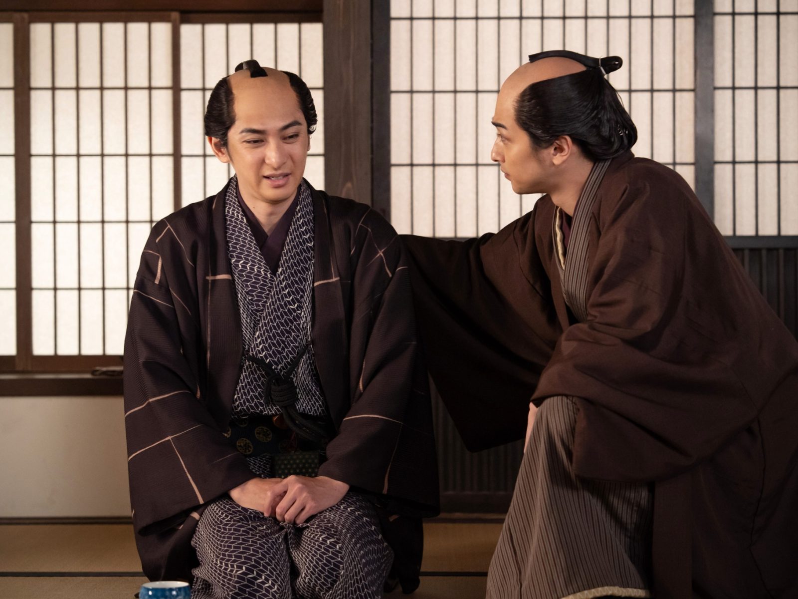 *TOP画像/政演/山東京伝(古川雄大) 蔦重(横浜流星) 大河ドラマ「べらぼう~蔦重栄華乃夢噺~」37話(9月28日放送)より(C)NHK