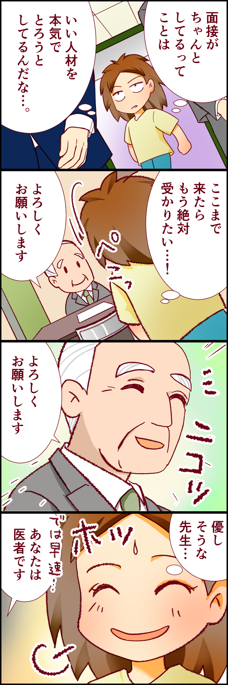 臨床トップクラスの難関大、「C大学」で、初めて筆記を合格したさつき。4人の面接官と順番に話していくという第一次面接に進みますが…。