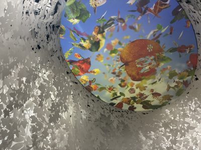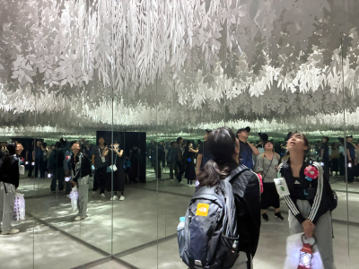 歩き回るエリアによってはもしかして見つけにくいかもしれないのがこのお部屋。必ず探し出してくださいね。四方を鏡で囲まれた部屋の天井には一面の葉っぱ切り紙!