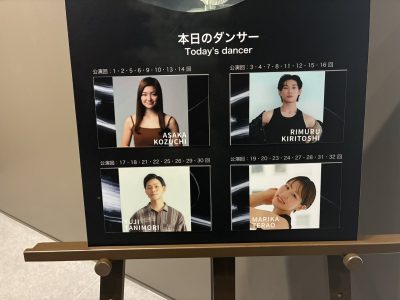 この日のダンサーさんのお名前も掲示。毎日4人が交代しながら表現を続けます。