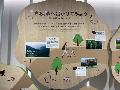 いちばん最後、全国の森への案内の展示、そしてSHOPで館は終了です。この館のゴールはここまでの体験を通じて「森へ行ってみようと感じること」だそう。間違いなく今後は山や森を見る目が変わる65分でした。ぜひご体験ください!