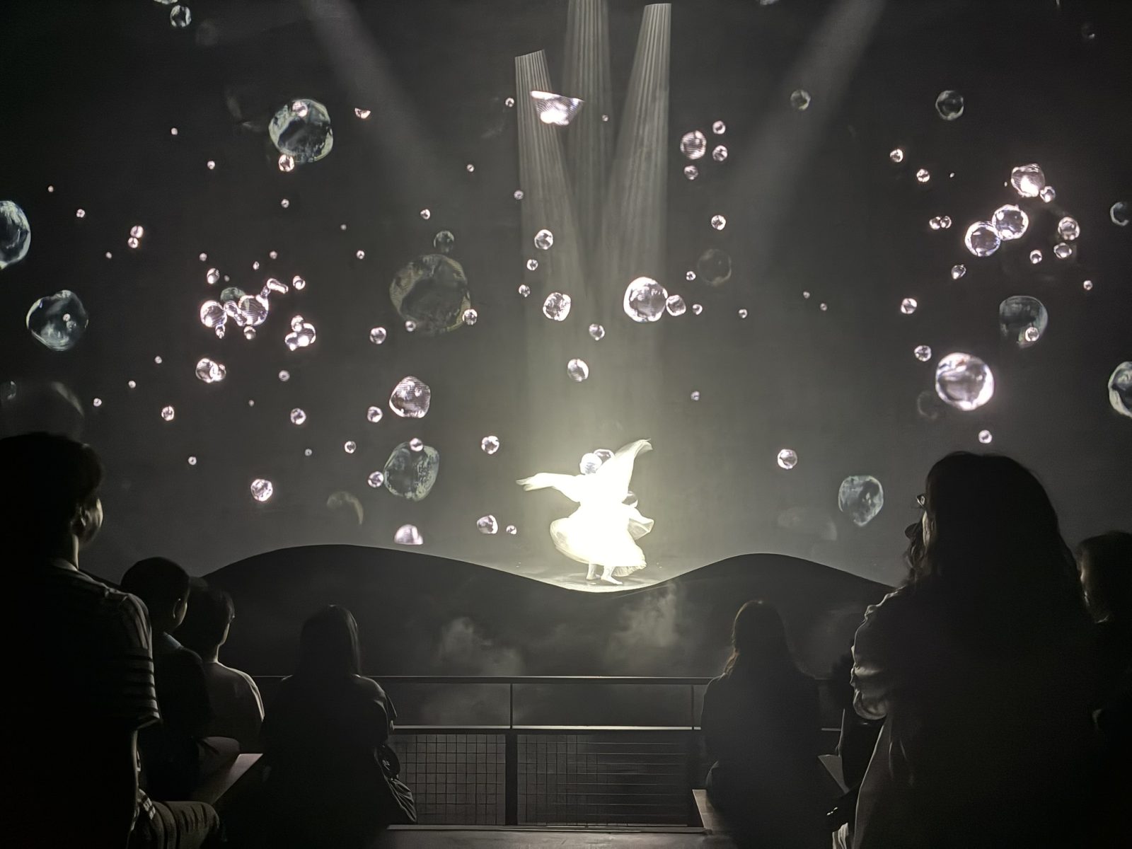 ストーリーが転換すると、スクリーンの向こう側にダンサーが登場! 実はリアルの人間が踊るという演出を知らないまま着席したので、登場の瞬間はものすごく驚きましたし、やがてその「人でなければできない表現」にじわじわと感動が広がりました。