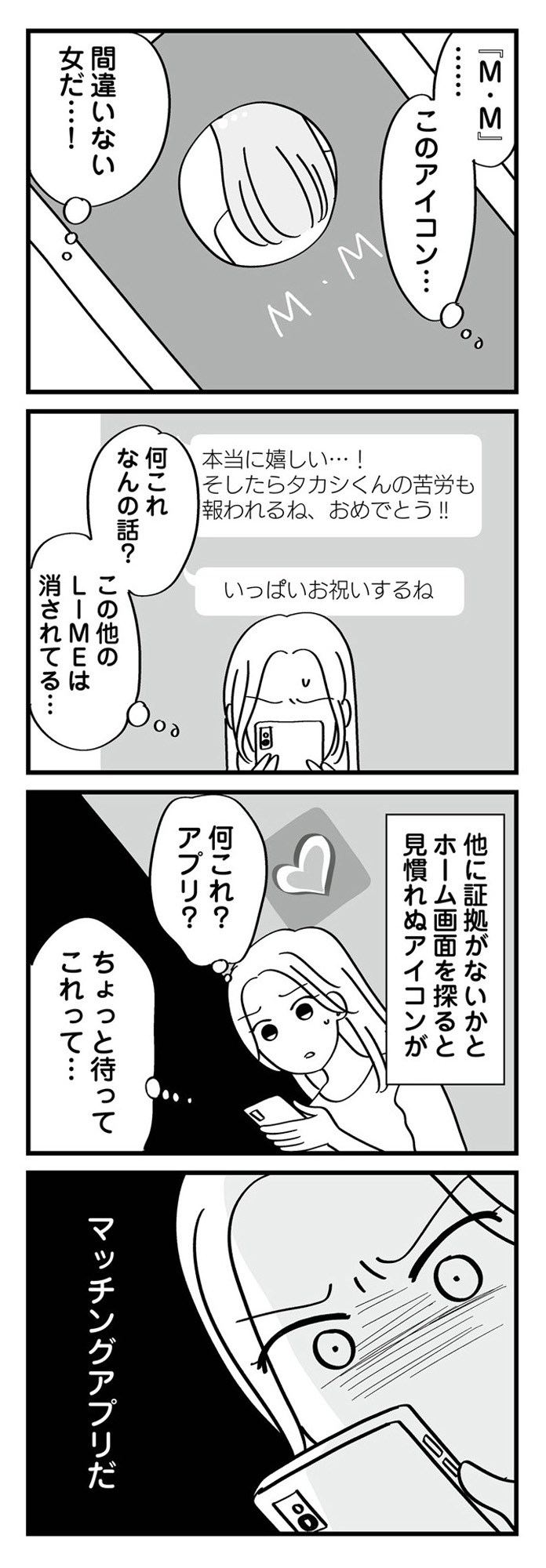 夫のスマホを覗いたら…女とのやりとりとマッチングアプリを発見!【私以外、全員クズ 夫の浮気はハニトラ地獄でした #6】 2025.10.23 LIFE 夫婦関係マンガ試し読みマンガ私以外、全員クズ 夫の浮気はハニトラ地獄でした 試し読み試し読み不倫 ▶Renta!『私以外、全員クズ 夫の浮気はハニトラ地獄でした』 ▶30日間無料▶ Amazonの読み放題をチェック! 【99円で2カ月間】 Audible が無制限で聴ける! ▶楽天KOBO 初回購入金額のポイント最大70倍! スポンサーリンク 次のページへ >> 1 2 3 【注目の記事】 1番対策が難しかった…!頬のたるみやほうれい線につながるNG食事習慣最後のひとつ 冬の寒さに負けない!そろそろ準備したい中綿アウター×【ユニクロ】バズりデニムの着こなし【40代の毎日コーデ】 【ユニクロ】カシミヤタッチニットで魅せる!旬のブラウンを効かせた洗練肩掛けテク【40代の毎日コーデ】 東大生が注意喚起!「鵜呑みにしてはいけない」SNSで「でたらめの受験情報」を発信する人の特徴とは 「東大受験が簡単!?」な難関私立高出身者。天才たちの受験勉強、その驚きの実態とは この記事は OTONA SALONE4 スポンサーリンク スポンサーリンク 【人気の関連記事】 小泉今日子、前代未聞の不倫宣言でピンチを迎えたのは誰か? みなさんは”逆張り”という言葉をお聞きになったことがありますか?これは株式投資用語で、株価格が急変したとき、あえて流れに逆らって売買をすることを言います。奇しくも… 40代。もう私、いつ死んだっていい気がするけど | あした死ぬには、#1 突然の病気。更年期障害。取れない疲労、お金の不安、これからの人生の迷い……。40代がぶち当たる「壁」をあまりにもリアルに描き出し、熱く静かな共感をさらった雁須磨子さ… 人前では「完璧な夫婦」を演じる夫。普段は私を無視してるって、誰も知らない【女40代はおそろしい#11】 40歳・フリーデザイナーの丸山ふさ子。 夫との攻防戦の末、「共働きだけど夫のほうが家事育児多め」という関係にやっとたどり着く。バリキャリ会社員のまい、起業家のかお…