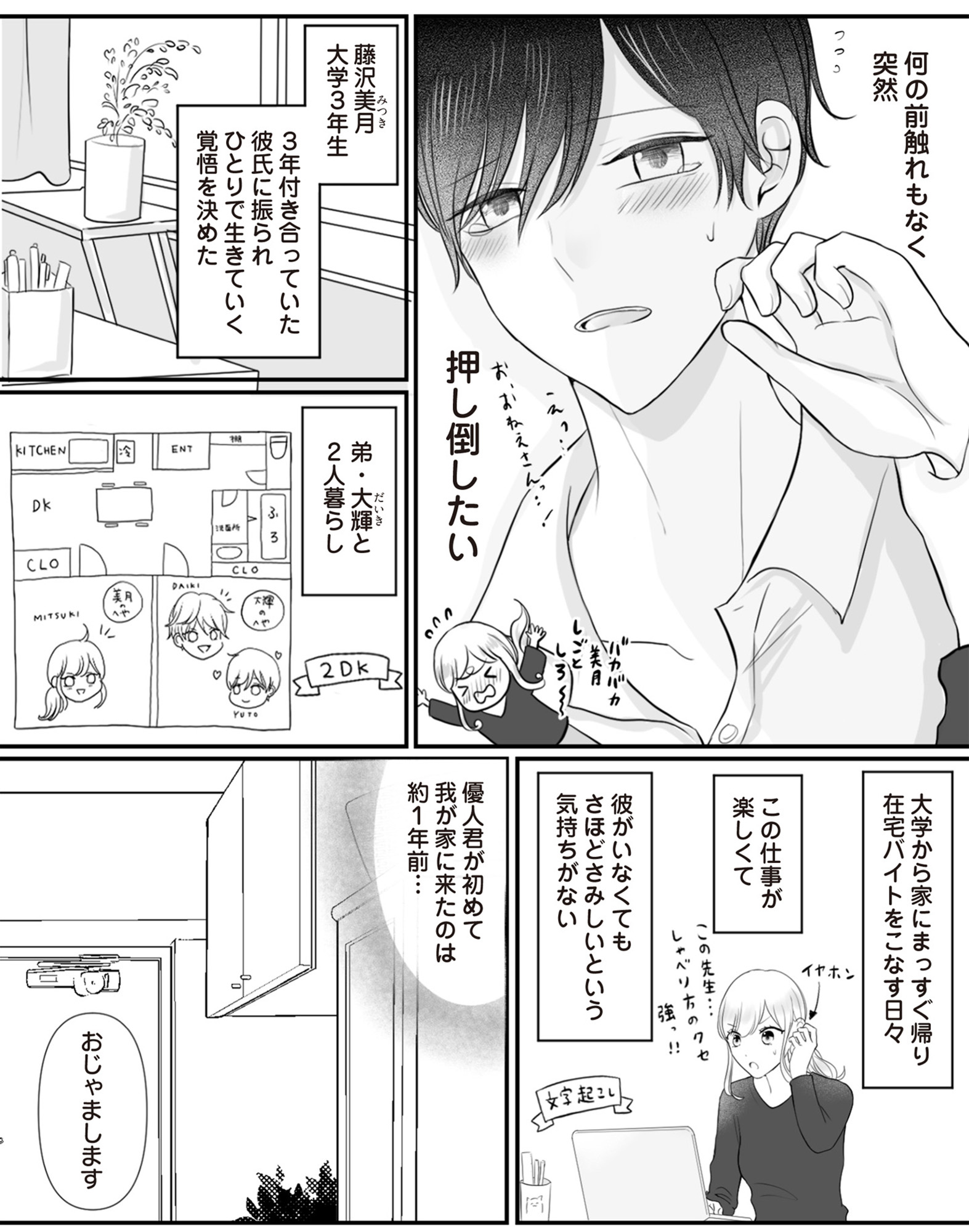 弟の友達に胸キュンが止まらない!隣の部屋が気になる私って…もしかして変態!?【弟の友達がかわいい #1】 2025.10.20 LIFE 男女関係試し読みマンガ弟の友達がかわいい 試し読みマンガ試し読み ▶Renta!『弟の友達がかわいい1』 ▶30日間無料▶ Amazonの読み放題をチェック! 【99円で2カ月間】 Audible が無制限で聴ける! ▶楽天KOBO 初回購入金額のポイント最大70倍! スポンサーリンク 次のページへ >> 1 2 3 【注目の記事】 48歳、高コスパコートをマネキン買いしたばかりのPTA中受ママが「羽織るだけでコーデ偏差値が爆上がりする」アイテムに出会ってしまい 「優しかったころの夫に戻って欲しい」その“希望”にすがり続けた妻が、裏切られ、心を壊していくまで 今シーズン着こなしたい【ユニクロ】の優秀スウェットパンツ。大人かっこいい着こなしのお手本スタイル【40代の毎日コーデ】 1番対策が難しかった…!頬のたるみやほうれい線につながるNG食事習慣最後のひとつ スウェットのカジュアルをきれいめに昇華!爽やかさ満点の着こなし【40代の毎日コーデ】 この記事は OTONA SALONE4 スポンサーリンク スポンサーリンク 【人気の関連記事】 40代。もう私、いつ死んだっていい気がするけど | あした死ぬには、#1 突然の病気。更年期障害。取れない疲労、お金の不安、これからの人生の迷い……。40代がぶち当たる「壁」をあまりにもリアルに描き出し、熱く静かな共感をさらった雁須磨子さ… 人前では「完璧な夫婦」を演じる夫。普段は私を無視してるって、誰も知らない【女40代はおそろしい#11】 40歳・フリーデザイナーの丸山ふさ子。 夫との攻防戦の末、「共働きだけど夫のほうが家事育児多め」という関係にやっとたどり着く。バリキャリ会社員のまい、起業家のかお… 年齢、たまに忘れてない?アラフォーあるあるが「共感しかない」と話題 「最近、若い頃と比べて何かが違う……」そんなモヤモヤを抱えているアラフォーのみなさん、必見!イラストレーターのRingoman(@ringo_fashion)さんがインスタグラムに投稿…