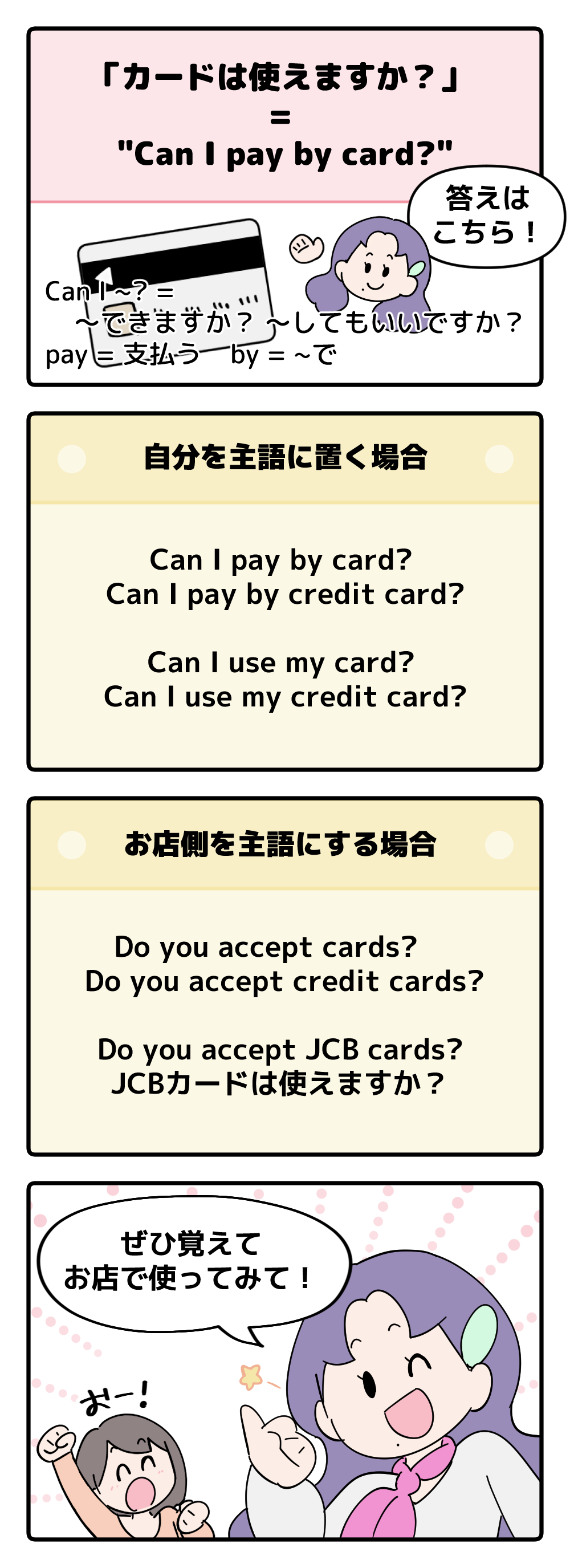 マンガでわかる!英語で「カードは使えますか?」はなんて言う?