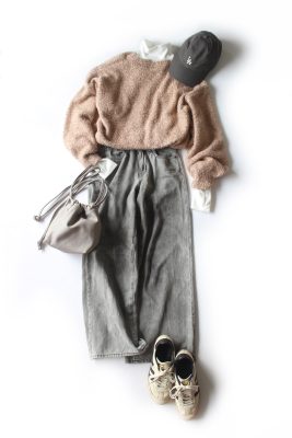 - 細リブニットで作る大人の甘辛モノトーンと体型カバー法【40代の毎日コーデ】