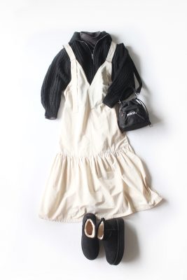 - 細リブニットで作る大人の甘辛モノトーンと体型カバー法【40代の毎日コーデ】