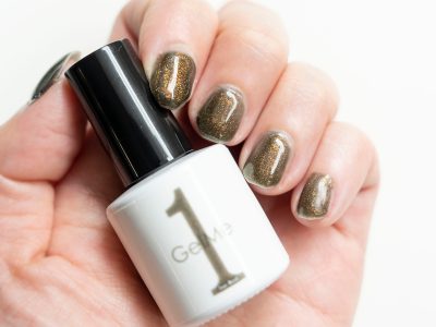 「Playfully Yours」をテーマにした5色のうち、注目は「GM165 Ever Mood(エバームード)」。多色ラメがたっぷりと入ったファッショナブルなカーキで、こなれた手もとに導いてくれます。写真は厚めに2度塗り。ショートネイルでも映える、ホリデーシーズンにぴったりなカラーでした!
