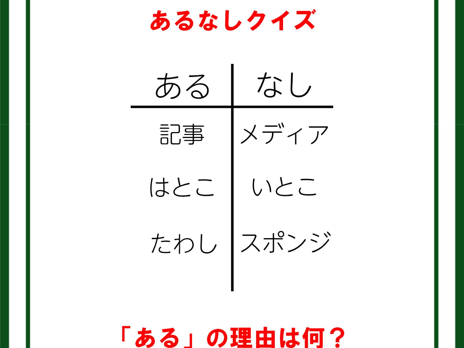 あるなしクイズです!「記事にあってメディアにない。はとこにあっていとこにはない」あるの共通点はなんでしょう【難易度LV2.・甘口】