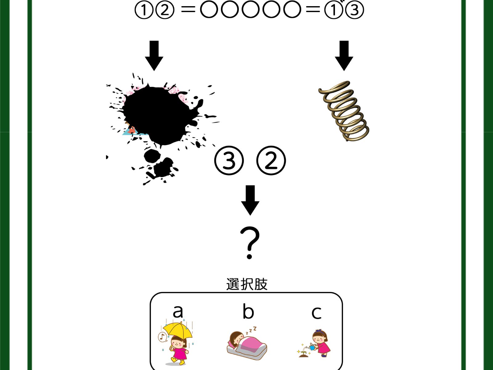 共通の5文字の言葉があり、それがそれぞれ違う2文字の何かに置き換えられるようです。片一方はインクで汚されているのでもう片方のイラストを考えてみましょう。