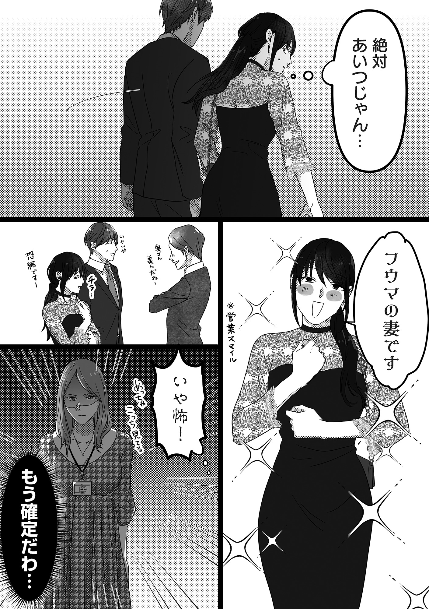 いざ会社の周年パーティーへ! 仲のいい夫婦をアピールすると、遠くから睨みつける女性が…【私、「サレ妻予備軍」になりました。 #10】