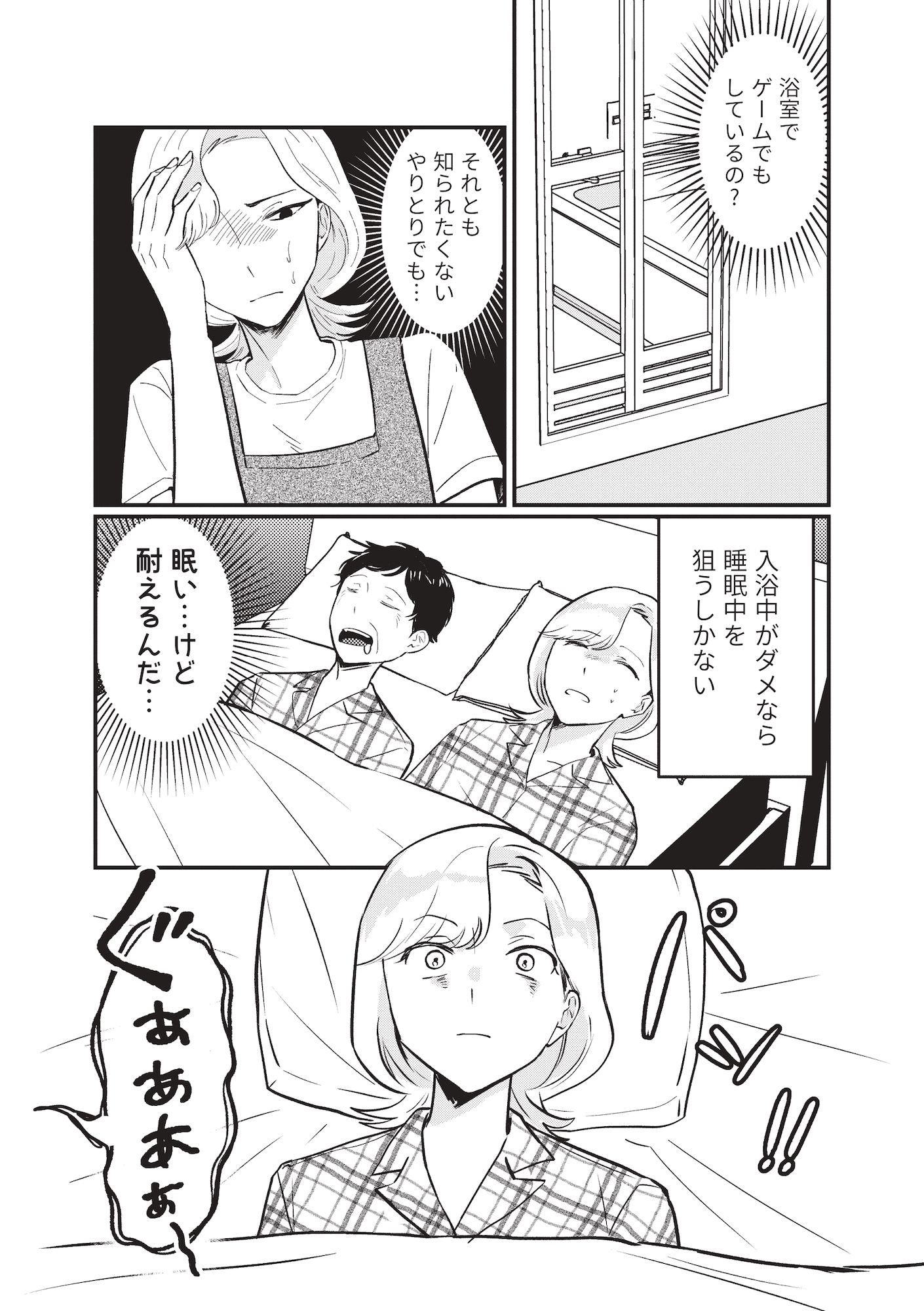まさか夫が犯人…? ミヤコが夫のスマホを探ると、夫の「パパ活」が判明する。