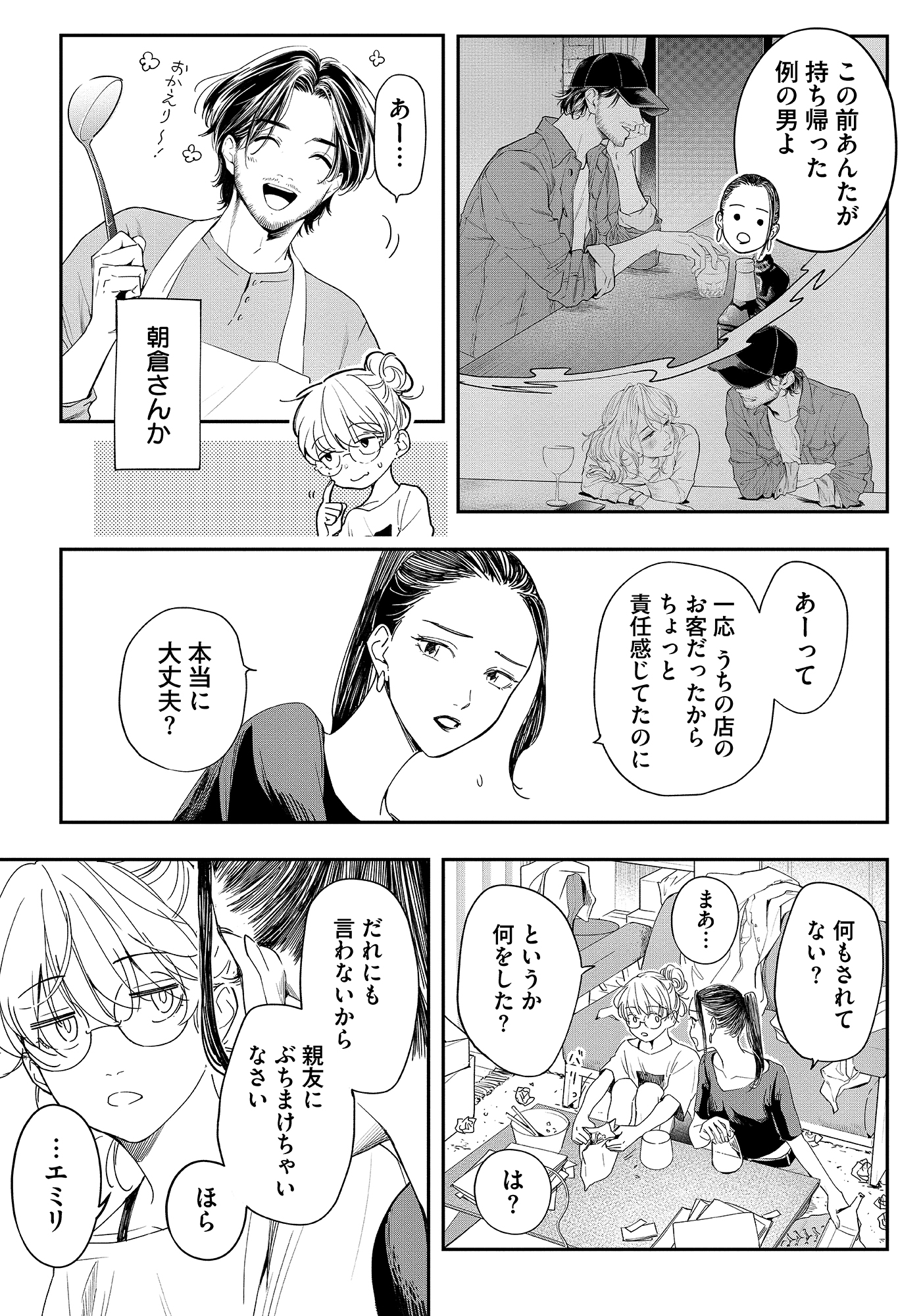 翌朝、目を覚ますとそのイケメンが朝食を作っていて…二日酔いの頭で昨夜を思い出そうとするが、まったく思い出せない。