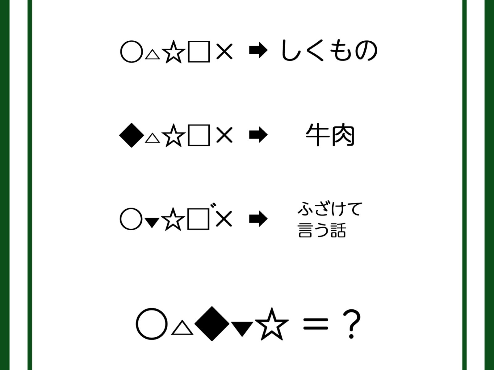 クイズです!「右のヒントから左の単語を導きましょう」各記号は同じ文字が入ります【難易度LV3.・中辛】