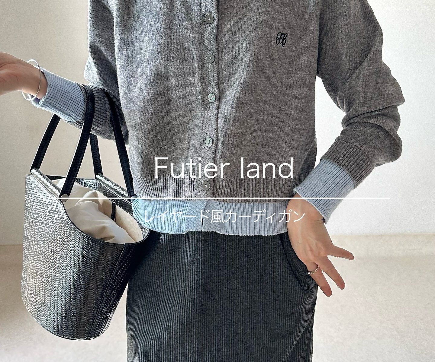 人気インフルエンサー@akokako さんの、秋らしいグレージュカラーの着こなしをご紹介します。主役はレイヤード風カーディガン。これはまるでカーディガンを重ね着しているかのように見えるデザイン。一枚で旬の着こなしを叶えてくれる優秀アイテムです。特に、首元や袖口から覗くサックスブルーの配色が、やさしいグレージュにひとクセを加えて、地味に見せない工夫をしています。