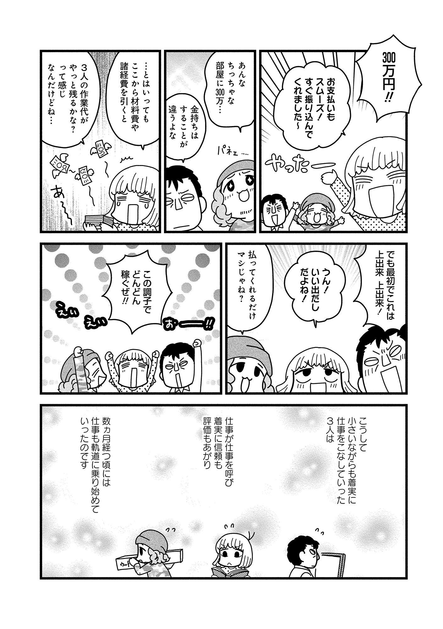 「この調子でどんどん稼ぐぜ」起業して4人体制での初仕事。その請求額は、なんと300万円!【夫が自殺したので会社はじめました。 #8】