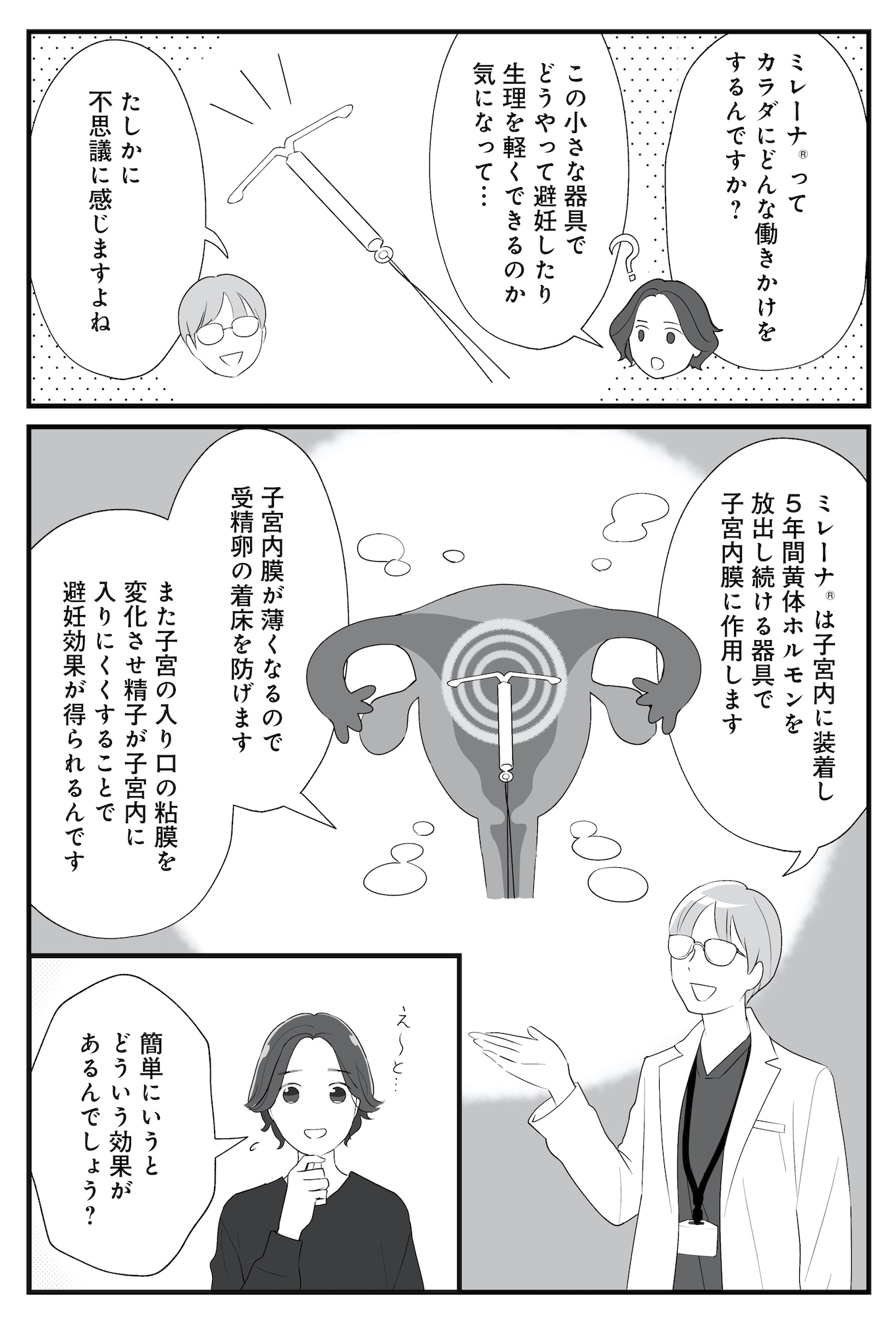 生理痛や月経困難症の改善の効果も! 避妊効果が得られる「ミレーナ」とは?【産婦人科医に聞く わたしとカラダの選択肢 #6】 2025.12.10 WELLNESS 生理体の不調マンガ試し読み試し読みマンガ産婦人科医に聞く わたしとカラダの選択肢 試し読み ▶Renta!『産婦人科医に聞く わたしとカラダの選択肢』 ▶30日間無料▶ Amazonの読み放題をチェック! 【99円で2カ月間】 Audible が無制限で聴ける! ▶楽天KOBO 初回購入金額のポイント最大70倍! スポンサーリンク 次のページへ >> 1 2 3 4 5 6 【注目の記事】 お仕事世代の30~50代がもれなく悩む「睡眠」。つけるだけで丁寧に伴走してくれるガーミンのフィットネスGPSウォッチ「Venu 4」の「超絶実力」 気をつけて!「最近なんだか、疲れやすい」オトナ世代の女性が見落としがちな「病気」とは つい毎日やりがち。肌年齢マイナス14歳美容のプロがやめてよかった、睡眠の質を落とす夜の習慣2つ 48歳、高コスパコートをマネキン買いしたばかりのPTA中受ママが「羽織るだけでコーデ偏差値が爆上がりする」アイテムに出会ってしまい 今シーズン着こなしたい【ユニクロ】の優秀スウェットパンツ。大人かっこいい着こなしのお手本スタイル【40代の毎日コーデ】 この記事は OTONA SALONE10 スポンサーリンク スポンサーリンク 【人気の関連記事】 ツライときは食事を変えよう #2 毎日イライラ、物忘れもすごい。ダメママすぎて涙がでそう がんばって家事も育児もしないとならないのに、どうしてだろう、毎日だるくて起き上がれない…こんなことじゃダメだ、私…2人の子どもを育てながら家事をがんばる30代の愛ち… ツライときは食事を変えよう #4 朝起きられないのは○○不足のせいだった…!? がんばって家事も育児もしないとならないのに、どうしてだろう、毎日だるくて起き上がれない…こんなことじゃダメだ、私…2人の子どもを育てながら家事をがんばる30代の愛ち… ツライときは食事を変えよう #6 起き上がれないレベルのだるさ。でも、○○を変えることで…? 30代の愛ちゃんは、いつもクタクタ。健康的な食生活を送っているはずなのに、なぜ……?愛ちゃんファミリーを中心にした、困った問題を、『栄養の不足』を補うことで、解決、…