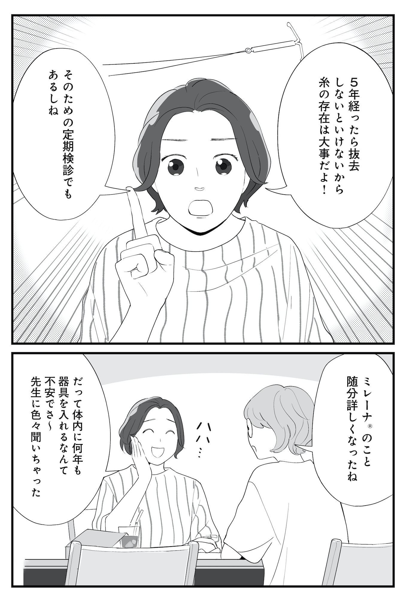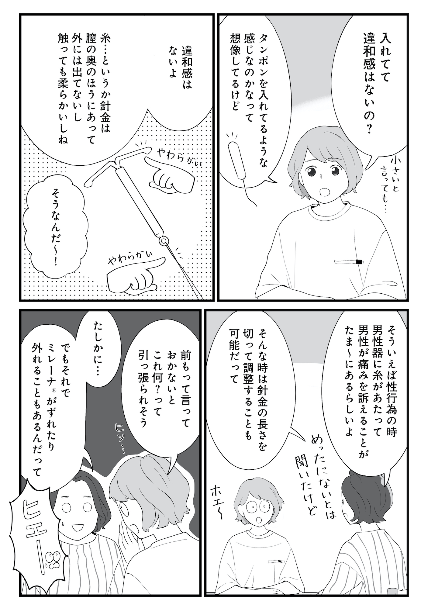 痛みはない? 装着時間は、ほんの数分。ミレーナ(避妊具)を挿入した後の感覚は… 【産婦人科医に聞く わたしとカラダの選択肢 #7】 2025.12.11 WELLNESS 産婦人科医に聞く わたしとカラダの選択肢 試し読みマンガマンガ試し読み体の不調試し読み生理 ▶Renta!『産婦人科医に聞く わたしとカラダの選択肢』 ▶30日間無料▶ Amazonの読み放題をチェック! 【99円で2カ月間】 Audible が無制限で聴ける! ▶楽天KOBO 初回購入金額のポイント最大70倍! スポンサーリンク 次のページへ >> 1 2 3 4 【注目の記事】 お仕事世代の30~50代がもれなく悩む「睡眠」。つけるだけで丁寧に伴走してくれるガーミンのフィットネスGPSウォッチ「Venu 4」の「超絶実力」 気をつけて!「最近なんだか、疲れやすい」オトナ世代の女性が見落としがちな「病気」とは つい毎日やりがち。肌年齢マイナス14歳美容のプロがやめてよかった、睡眠の質を落とす夜の習慣2つ 48歳、高コスパコートをマネキン買いしたばかりのPTA中受ママが「羽織るだけでコーデ偏差値が爆上がりする」アイテムに出会ってしまい 今シーズン着こなしたい【ユニクロ】の優秀スウェットパンツ。大人かっこいい着こなしのお手本スタイル【40代の毎日コーデ】 この記事は OTONA SALONE10 スポンサーリンク スポンサーリンク 【人気の関連記事】 ツライときは食事を変えよう #2 毎日イライラ、物忘れもすごい。ダメママすぎて涙がでそう がんばって家事も育児もしないとならないのに、どうしてだろう、毎日だるくて起き上がれない…こんなことじゃダメだ、私…2人の子どもを育てながら家事をがんばる30代の愛ち… ツライときは食事を変えよう #4 朝起きられないのは○○不足のせいだった…!? がんばって家事も育児もしないとならないのに、どうしてだろう、毎日だるくて起き上がれない…こんなことじゃダメだ、私…2人の子どもを育てながら家事をがんばる30代の愛ち… ツライときは食事を変えよう #6 起き上がれないレベルのだるさ。でも、○○を変えることで…? 30代の愛ちゃんは、いつもクタクタ。健康的な食生活を送っているはずなのに、なぜ……?愛ちゃんファミリーを中心にした、困った問題を、『栄養の不足』を補うことで、解決、…