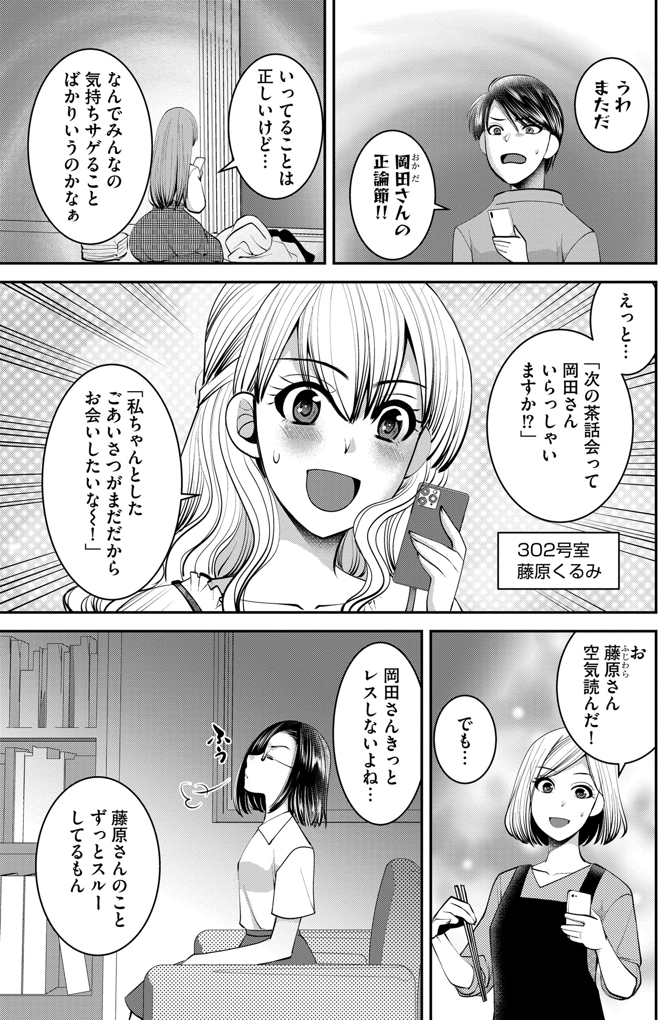 しかし同時に【平社員の妻の会】のトークルームでは、翔子の言動とパンチの効いた顔をディスるメッセージの嵐で……!?