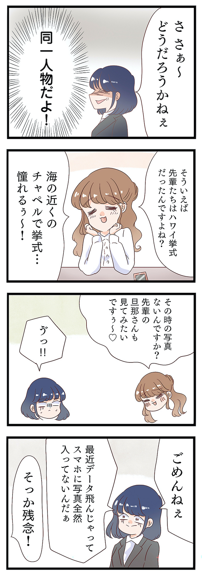 後輩は夫が既婚者だと知ったうえで不倫していた!不倫相手の本性が明らかになった瞬間…【同僚が私の夫と結婚するらしいので、最高の仕返しを贈ります #4】 2025.11.09 LOVE 試し読み同僚が私の夫と結婚するらしいので、最高の仕返しを贈ります 試し読みマンガ不倫マンガ試し読み 学生時代から7年交際していたリュウタと結婚したイチカ。 仕事も私生活も充実した日々を送っていたが、ある日夫の不倫が発覚! しかも、旦那の不倫相手はイチカが大嫌いな職場の後輩・ナナだったことが判明する。 リュウタの妻の正体を知らずに、恋愛相談をするナナ。イチカは味方を装って証拠を集め、徹底的に2人を追い詰めるようとするが…。 ※本記事はしろみ著の電子書籍『同僚が私の夫と結婚するらしいので、最高の仕返しを贈ります』から一部抜粋・編集しました。 ▶Renta!『同僚が私の夫と結婚するらしいので、最高の仕返しを贈ります』 ▶30日間無料▶ Amazonの読み放題をチェック! 【99円で2カ月間】 Audible が無制限で聴ける! ▶楽天KOBO 初回購入金額のポイント最大70倍! スポンサーリンク 続きを読む 次のページへ >> 1 2 3 【注目の記事】 1番対策が難しかった…!頬のたるみやほうれい線につながるNG食事習慣最後のひとつ 冬の寒さに負けない!そろそろ準備したい中綿アウター×【ユニクロ】バズりデニムの着こなし【40代の毎日コーデ】 【ユニクロ】カシミヤタッチニットで魅せる!旬のブラウンを効かせた洗練肩掛けテク【40代の毎日コーデ】 東大生が注意喚起!「鵜呑みにしてはいけない」SNSで「でたらめの受験情報」を発信する人の特徴とは 「東大受験が簡単!?」な難関私立高出身者。天才たちの受験勉強、その驚きの実態とは この記事は OTONA SALONE1 スポンサーリンク スポンサーリンク 【人気の関連記事】 ハマったら危険!不倫上手な男たちが絶対にしない8つのこと 2016年も残すところあと少しですが、今年はとにかく芸能人の不倫ネタが多かった印象。どうして女性は、傷つくのがわかっているのに不倫に走ってしまうのか。大人の女性たち… 【なぜどく#7 45歳・A子さん編】地方は独身男が少ない!40代でやっと気づいたこと 【なぜ彼女は独身なのか?40代独女の本音 ♯7】アラフォー独身のイラストレーターNobbyさんが、絶賛婚活中の編集長・アサミといっしょに、婚活中の独身女性と「私たちはな… 【なぜどく#8】42歳独女が月額10万のセレブ婚活サロンに登録した結果… 【なぜ彼女は独身なの?40代独女の本音 ♯8】アラフォー独身のイラストレーターNobbyさんが、絶賛婚活中の編集長・アサミといっしょに、婚活中の独身女性と「私たちはなぜ…