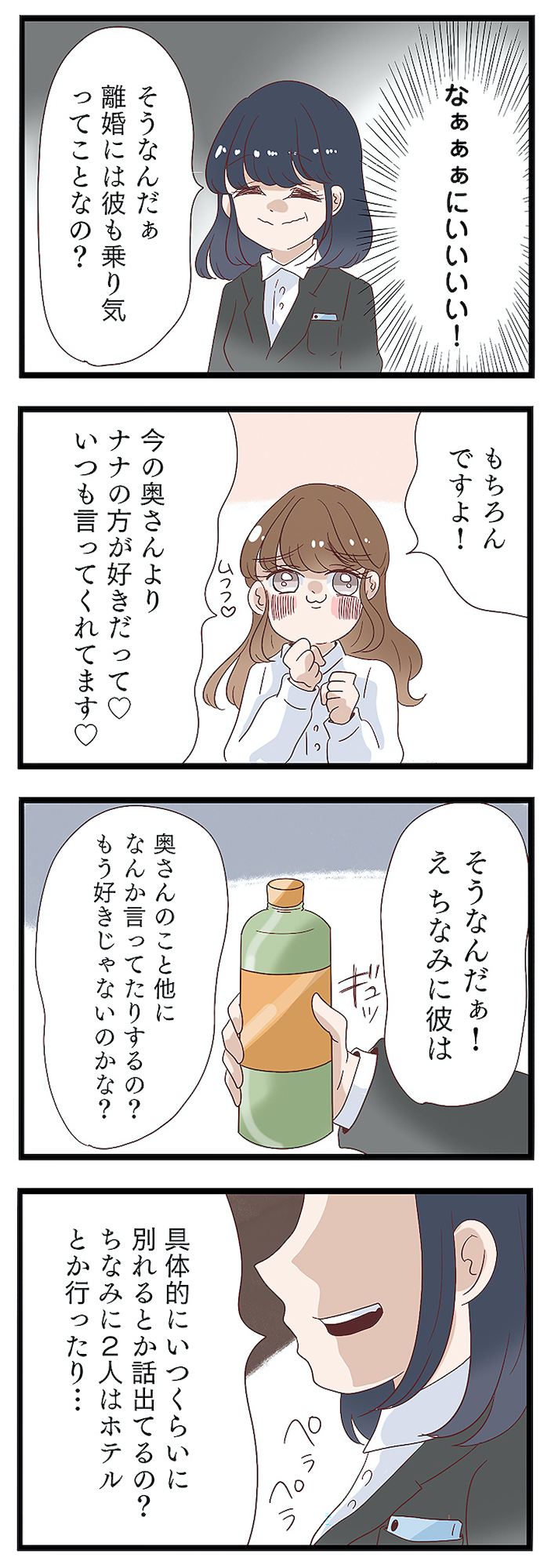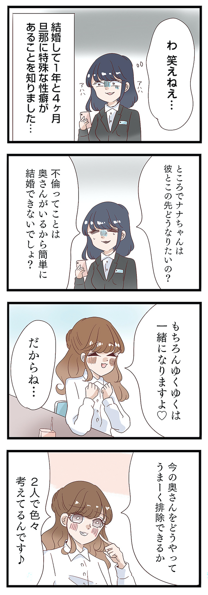奥さんを排除する方法は?不倫相手の衝撃発言に動揺。つい踏み込んだ質問をしてしまい…【同僚が私の夫と結婚するらしいので、最高の仕返しを贈ります #6】 2025.11.10 LOVE 同僚が私の夫と結婚するらしいので、最高の仕返しを贈ります 試し読み不倫マンガマンガ試し読み試し読み ▶Renta!『同僚が私の夫と結婚するらしいので、最高の仕返しを贈ります』 ▶30日間無料▶ Amazonの読み放題をチェック! 【99円で2カ月間】 Audible が無制限で聴ける! ▶楽天KOBO 初回購入金額のポイント最大70倍! スポンサーリンク 次のページへ >> 1 2 3 4 【注目の記事】 1番対策が難しかった…!頬のたるみやほうれい線につながるNG食事習慣最後のひとつ 冬の寒さに負けない!そろそろ準備したい中綿アウター×【ユニクロ】バズりデニムの着こなし【40代の毎日コーデ】 【ユニクロ】カシミヤタッチニットで魅せる!旬のブラウンを効かせた洗練肩掛けテク【40代の毎日コーデ】 東大生が注意喚起!「鵜呑みにしてはいけない」SNSで「でたらめの受験情報」を発信する人の特徴とは 「東大受験が簡単!?」な難関私立高出身者。天才たちの受験勉強、その驚きの実態とは この記事は OTONA SALONE1 スポンサーリンク スポンサーリンク 【人気の関連記事】 ハマったら危険!不倫上手な男たちが絶対にしない8つのこと 2016年も残すところあと少しですが、今年はとにかく芸能人の不倫ネタが多かった印象。どうして女性は、傷つくのがわかっているのに不倫に走ってしまうのか。大人の女性たち… 【なぜどく#7 45歳・A子さん編】地方は独身男が少ない!40代でやっと気づいたこと 【なぜ彼女は独身なのか?40代独女の本音 ♯7】アラフォー独身のイラストレーターNobbyさんが、絶賛婚活中の編集長・アサミといっしょに、婚活中の独身女性と「私たちはな… 【なぜどく#8】42歳独女が月額10万のセレブ婚活サロンに登録した結果… 【なぜ彼女は独身なの?40代独女の本音 ♯8】アラフォー独身のイラストレーターNobbyさんが、絶賛婚活中の編集長・アサミといっしょに、婚活中の独身女性と「私たちはなぜ…