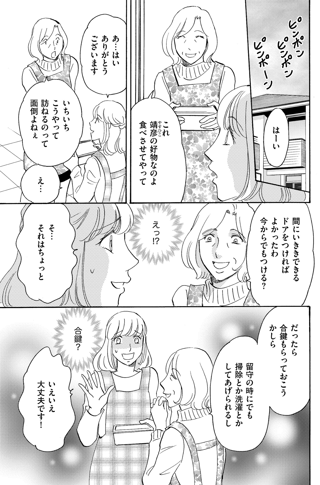 完全分離型二世帯住宅なのに、間にドアを作る⁉合鍵をくれ⁉「義母の要求」がエスカレートしてきた【ぼっち主婦、ハブられたくないから #20】 2025.11.08 LIFE マンガマンガ試し読み試し読みぼっち主婦、ハブられたくないから60万のコート買う 試し読み 人付き合いが苦手でなかなかママ友ができずにいた芳乃。 そんなある日、公園で出会った沙織と意気投合! 初めてできたママ友に浮かれる芳乃だったが、社交的な沙織にはほかにもたくさんのママ友がいて……!? 読者の本当にあったママ友・身内間のトラブルをコミカライズする傑作選!! ※本記事は伊東爾子著の電子書籍『ぼっち主婦、ハブられたくないから60万のコート買う』から一部抜粋・編集しました。 ▶ebookjapan『ぼっち主婦、ハブられたくないから60万のコート買う』 ▶30日間無料▶ Amazonの読み放題をチェック! 【99円で2カ月間】 Audible が無制限で聴ける! ▶楽天KOBO 初回購入金額のポイント最大70倍! スポンサーリンク 続きを読む 次のページへ >> 1 2 3 【注目の記事】 1番対策が難しかった…!頬のたるみやほうれい線につながるNG食事習慣最後のひとつ 冬の寒さに負けない!そろそろ準備したい中綿アウター×【ユニクロ】バズりデニムの着こなし【40代の毎日コーデ】 【ユニクロ】カシミヤタッチニットで魅せる!旬のブラウンを効かせた洗練肩掛けテク【40代の毎日コーデ】 東大生が注意喚起!「鵜呑みにしてはいけない」SNSで「でたらめの受験情報」を発信する人の特徴とは 「東大受験が簡単!?」な難関私立高出身者。天才たちの受験勉強、その驚きの実態とは この記事は OTONA SALONE1 スポンサーリンク スポンサーリンク 【人気の関連記事】 40代。もう私、いつ死んだっていい気がするけど | あした死ぬには、#1 突然の病気。更年期障害。取れない疲労、お金の不安、これからの人生の迷い……。40代がぶち当たる「壁」をあまりにもリアルに描き出し、熱く静かな共感をさらった雁須磨子さ… 人前では「完璧な夫婦」を演じる夫。普段は私を無視してるって、誰も知らない【女40代はおそろしい#11】 40歳・フリーデザイナーの丸山ふさ子。 夫との攻防戦の末、「共働きだけど夫のほうが家事育児多め」という関係にやっとたどり着く。バリキャリ会社員のまい、起業家のかお… 年齢、たまに忘れてない?アラフォーあるあるが「共感しかない」と話題 「最近、若い頃と比べて何かが違う……」そんなモヤモヤを抱えているアラフォーのみなさん、必見!イラストレーターのRingoman(@ringo_fashion)さんがインスタグラムに投稿…