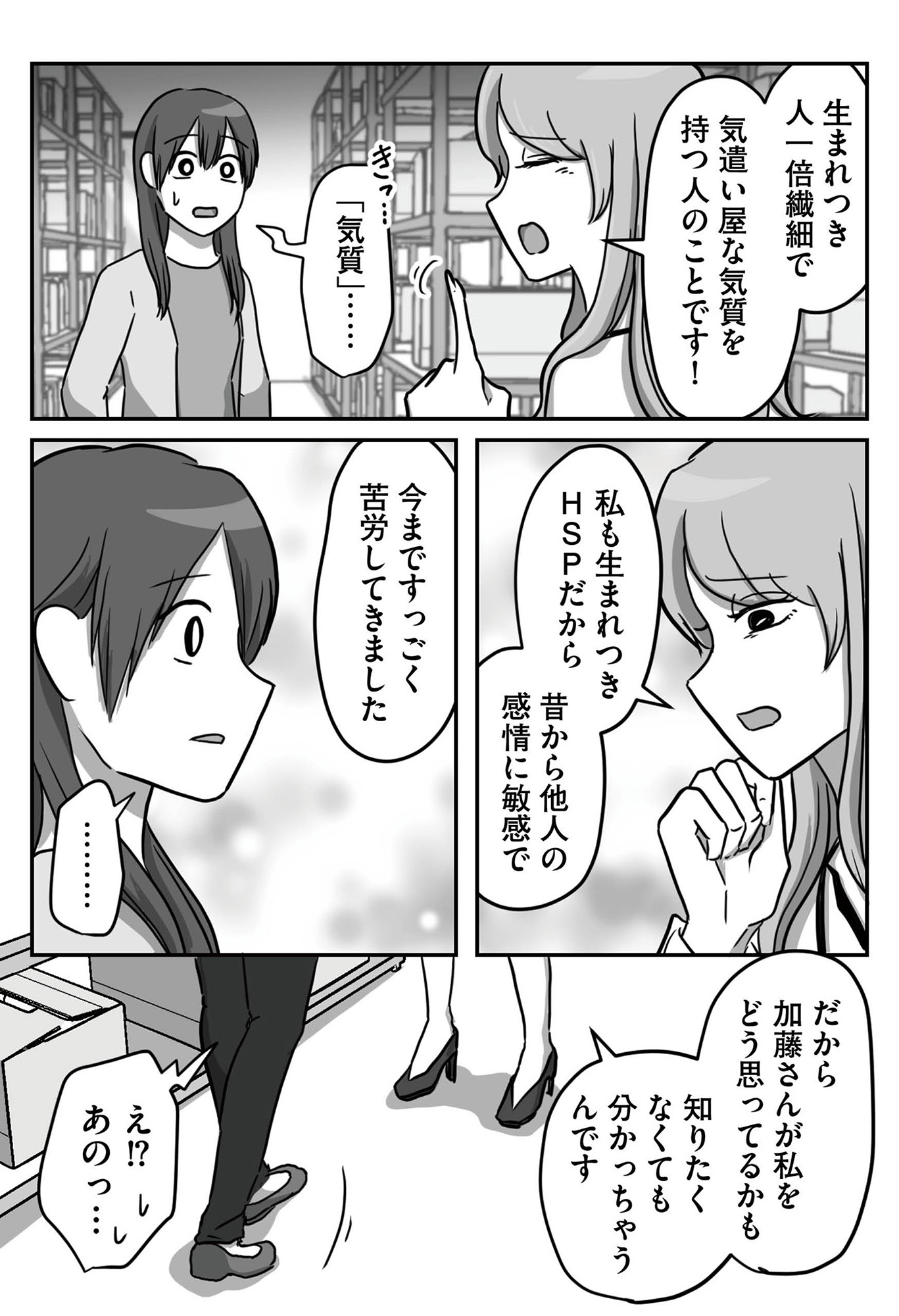 生まれつき人一倍繊細で気遣い屋?新入社員に突然倉庫に呼び出された理由は…【新人は自称HSP #4】 2025.11.24 WORK 人間関係試し読みマンガ試し読みマンガ新人は自称HSP 試し読み ▶Renta!『新人は自称HSP』 ▶30日間無料▶ Amazonの読み放題をチェック! 【99円で2カ月間】 Audible が無制限で聴ける! ▶楽天KOBO 初回購入金額のポイント最大70倍! スポンサーリンク 次のページへ >> 1 2 3 4 【注目の記事】 1番対策が難しかった…!頬のたるみやほうれい線につながるNG食事習慣最後のひとつ 冬の寒さに負けない!そろそろ準備したい中綿アウター×【ユニクロ】バズりデニムの着こなし【40代の毎日コーデ】 【ユニクロ】カシミヤタッチニットで魅せる!旬のブラウンを効かせた洗練肩掛けテク【40代の毎日コーデ】 東大生が注意喚起!「鵜呑みにしてはいけない」SNSで「でたらめの受験情報」を発信する人の特徴とは 「東大受験が簡単!?」な難関私立高出身者。天才たちの受験勉強、その驚きの実態とは この記事は OTONA SALONE1 スポンサーリンク スポンサーリンク 【人気の関連記事】 職場で「敵を作らない女性」はこの4つの距離を知っている 人混みなどで、見知らぬ人が必要以上に自分に接近していると、不快な気持ちになったりしますよね。「もっと自分から離れてほしい、イヤだな」と感じる距離感、それをパーソ… 【岩井志麻子】40代から「やめたほうがいい」人間関係とは? 仕事で、服役経験者や刑務所への取材をしたことが何度かある。そこで当事者達だけでなく、刑務官や弁護士といった関係者も口をそろえたのは、「やっぱり何がつらいって、人… 会社の人事異動による「ストレス」を少しでも軽くする5つの方法 春、多くの会社では人事異動がある。希望の部署や役職に就けたことで仕事のモチベーションがあがる人もいる一方で、希望しない異動によって心に大きなストレスを抱える人も…