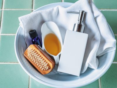 湯船にはちみつ大さじ2〜3杯を入れて溶かせばOK。香りを楽しみたいときは、ラベンダーなどスキンケア効果のある精油4〜5滴を、はちみつ大さじ1に垂らしてよく混ぜてからお湯に溶かします。