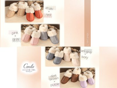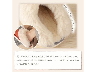 【たっぷりファーつき】足の甲~かかとまで包み込むようなファーと、内側のボア素材であったか♪ インテリアの一部として、置いてあるだけでもかわいい!