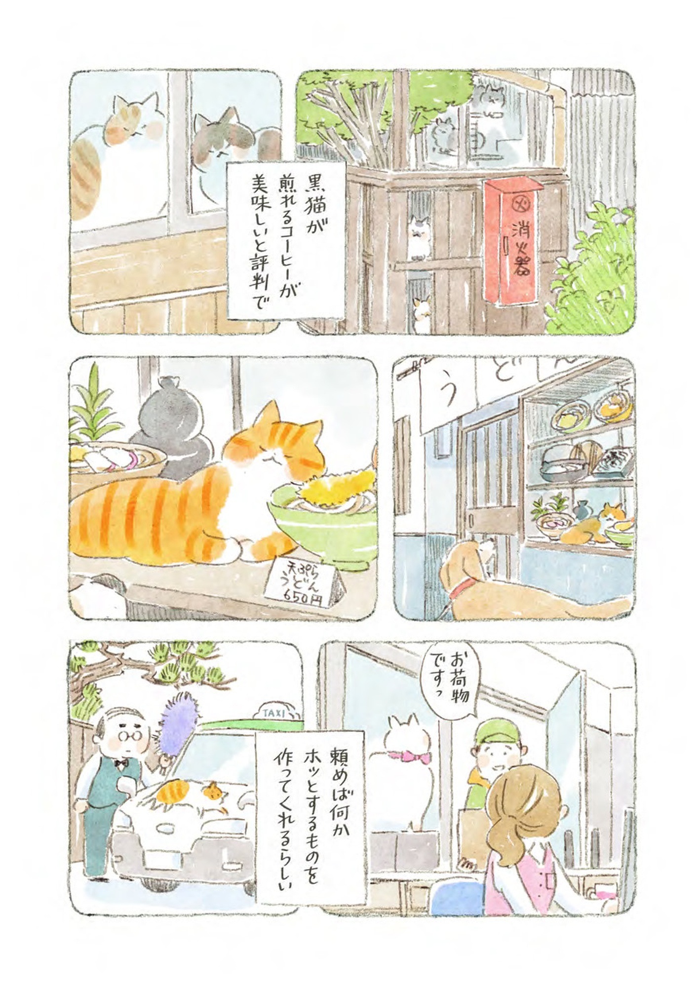 真夜中に猫が集まる喫茶店に迷い込む悩める人間たちが、猫たちとおいしいメニューに癒されるストーリー。