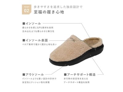 爆売れ中の超人気スリッパ! ふわふわの厚底は、床から伝わる冷気をしっかり遮断。土踏まずのアーチをしっかりサポートし、かかとのエアクッションで分散させます