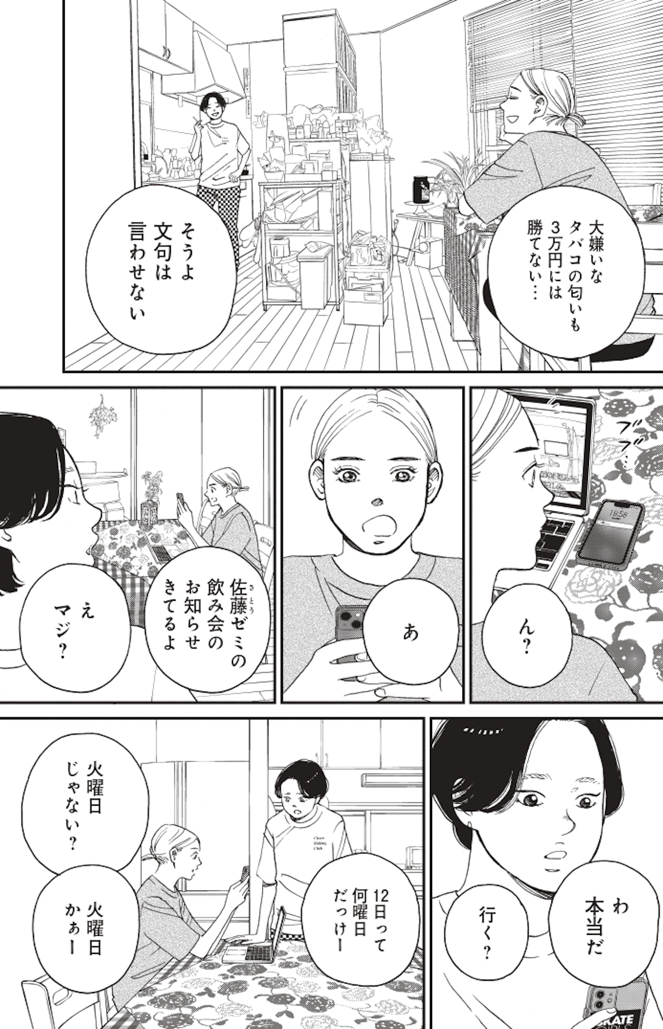 社会人になって久しぶりのゼミ同窓会。懐かしい仲間との再会に胸が高鳴る【おひとりさまホテル #2】 2025.11.15 LIFE おひとりさまホテル 試し読みマンガマンガ試し読み試し読み独身 ©まろ マキヒロチ/新潮社 ▶Renta!『おひとりさまホテル』 ▶30日間無料▶ Amazonの読み放題をチェック! 【99円で2カ月間】 Audible が無制限で聴ける! ▶楽天KOBO 初回購入金額のポイント最大70倍! スポンサーリンク 次のページへ >> 1 2 3 【注目の記事】 1番対策が難しかった…!頬のたるみやほうれい線につながるNG食事習慣最後のひとつ 冬の寒さに負けない!そろそろ準備したい中綿アウター×【ユニクロ】バズりデニムの着こなし【40代の毎日コーデ】 【ユニクロ】カシミヤタッチニットで魅せる!旬のブラウンを効かせた洗練肩掛けテク【40代の毎日コーデ】 東大生が注意喚起!「鵜呑みにしてはいけない」SNSで「でたらめの受験情報」を発信する人の特徴とは 「東大受験が簡単!?」な難関私立高出身者。天才たちの受験勉強、その驚きの実態とは この記事は OTONA SALONE4 スポンサーリンク スポンサーリンク 【人気の関連記事】 40代。もう私、いつ死んだっていい気がするけど | あした死ぬには、#1 突然の病気。更年期障害。取れない疲労、お金の不安、これからの人生の迷い……。40代がぶち当たる「壁」をあまりにもリアルに描き出し、熱く静かな共感をさらった雁須磨子さ… 人前では「完璧な夫婦」を演じる夫。普段は私を無視してるって、誰も知らない【女40代はおそろしい#11】 40歳・フリーデザイナーの丸山ふさ子。 夫との攻防戦の末、「共働きだけど夫のほうが家事育児多め」という関係にやっとたどり着く。バリキャリ会社員のまい、起業家のかお… 年齢、たまに忘れてない?アラフォーあるあるが「共感しかない」と話題 「最近、若い頃と比べて何かが違う……」そんなモヤモヤを抱えているアラフォーのみなさん、必見!イラストレーターのRingoman(@ringo_fashion)さんがインスタグラムに投稿…