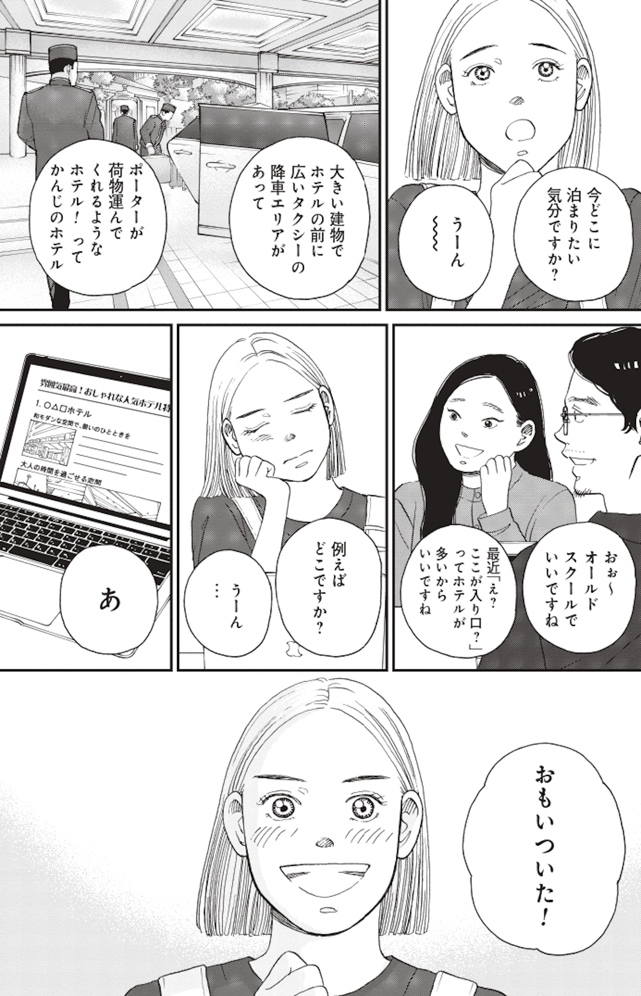 子供の頃に憧れたホテルステイ。大人になってもやっぱり特別!【おひとりさまホテル #4】 2025.11.16 LIFE 独身マンガおひとりさまホテル 試し読み試し読みマンガ試し読み ©まろ マキヒロチ/新潮社 ▶Renta!『おひとりさまホテル』 ▶30日間無料▶ Amazonの読み放題をチェック! 【99円で2カ月間】 Audible が無制限で聴ける! ▶楽天KOBO 初回購入金額のポイント最大70倍! スポンサーリンク 次のページへ >> 1 2 3 【注目の記事】 1番対策が難しかった…!頬のたるみやほうれい線につながるNG食事習慣最後のひとつ 冬の寒さに負けない!そろそろ準備したい中綿アウター×【ユニクロ】バズりデニムの着こなし【40代の毎日コーデ】 【ユニクロ】カシミヤタッチニットで魅せる!旬のブラウンを効かせた洗練肩掛けテク【40代の毎日コーデ】 東大生が注意喚起!「鵜呑みにしてはいけない」SNSで「でたらめの受験情報」を発信する人の特徴とは 「東大受験が簡単!?」な難関私立高出身者。天才たちの受験勉強、その驚きの実態とは この記事は OTONA SALONE4 スポンサーリンク スポンサーリンク 【人気の関連記事】 40代。もう私、いつ死んだっていい気がするけど | あした死ぬには、#1 突然の病気。更年期障害。取れない疲労、お金の不安、これからの人生の迷い……。40代がぶち当たる「壁」をあまりにもリアルに描き出し、熱く静かな共感をさらった雁須磨子さ… 人前では「完璧な夫婦」を演じる夫。普段は私を無視してるって、誰も知らない【女40代はおそろしい#11】 40歳・フリーデザイナーの丸山ふさ子。 夫との攻防戦の末、「共働きだけど夫のほうが家事育児多め」という関係にやっとたどり着く。バリキャリ会社員のまい、起業家のかお… 年齢、たまに忘れてない?アラフォーあるあるが「共感しかない」と話題 「最近、若い頃と比べて何かが違う……」そんなモヤモヤを抱えているアラフォーのみなさん、必見!イラストレーターのRingoman(@ringo_fashion)さんがインスタグラムに投稿…