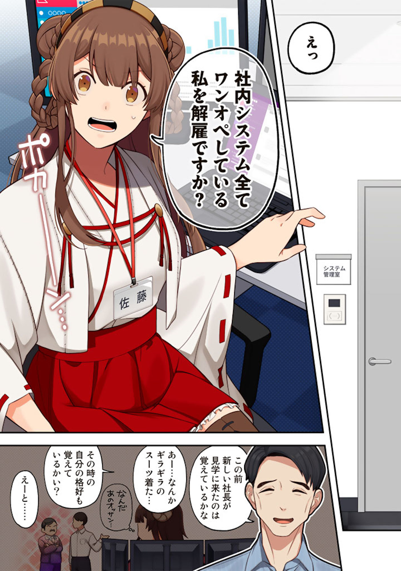 社内システムをワンオペしていた佐藤愛は、社長交代をきっかけに突然の解雇予告を受ける。