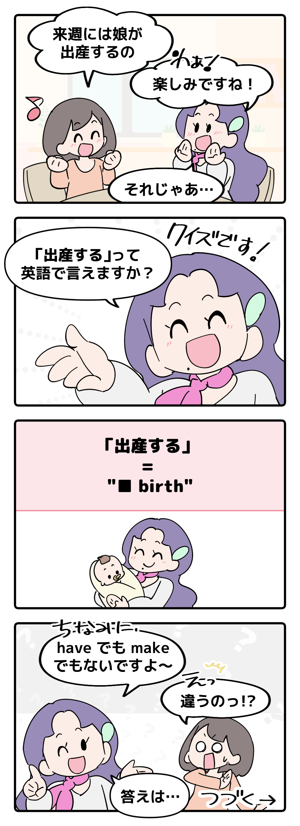 「英語嫌いな日本人をなくしたい!」海外生活や添乗員経験、そしてバイリンガル子育て中の英会話講師・Mrs.服部が、身近な英語表現を漫画&クイズ形式でお届け! 「間違ったら恥ずかしい」じゃなく「伝わればOK」。使えるフレーズをマンガで学びましょう!