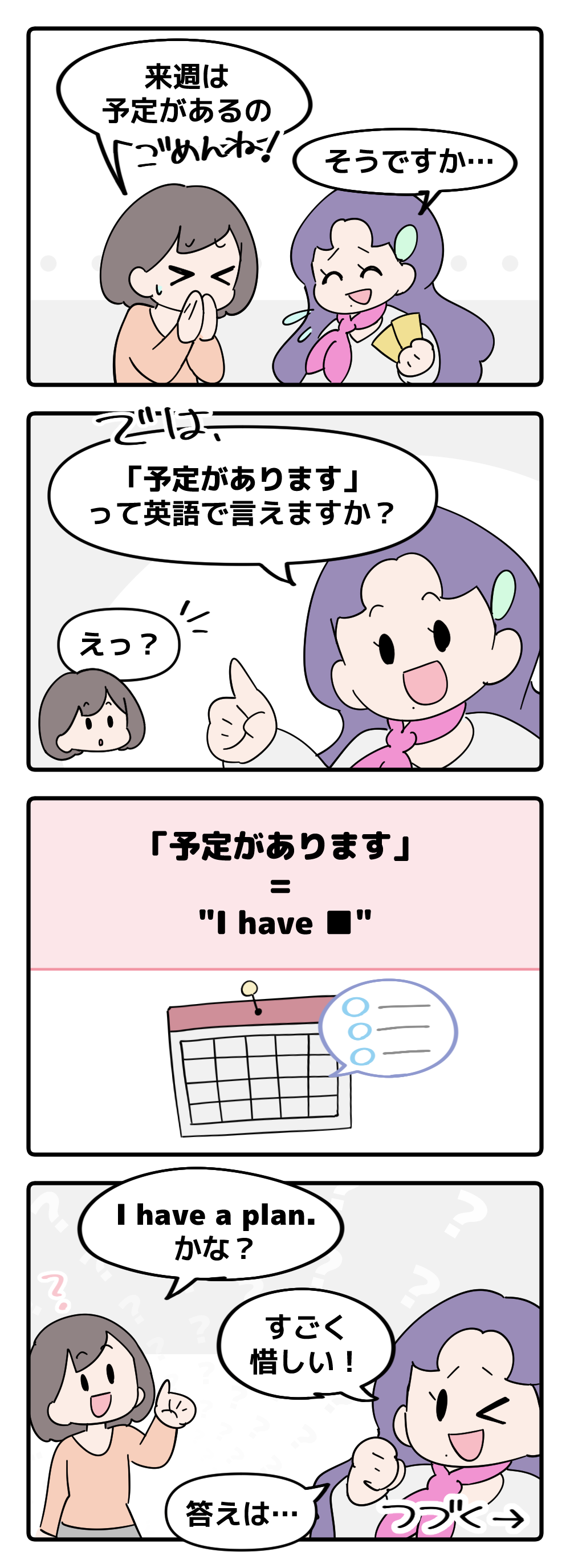 英語で「予定があります」はなんて言う?【マンガで読む英会話】