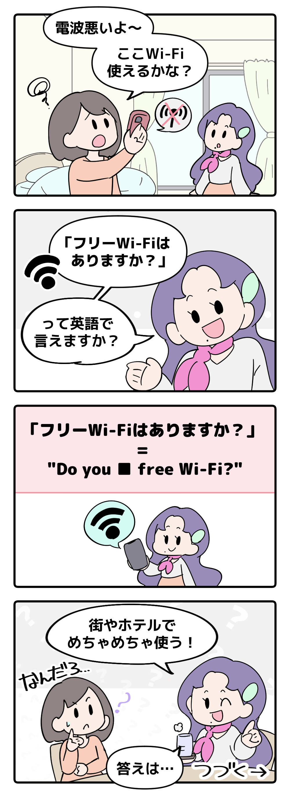 英語で「Wi-Fiは使えますか?」はなんて言う?【マンガで読む英会話】