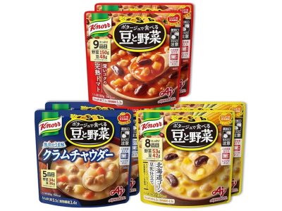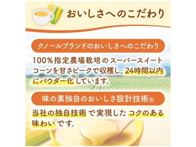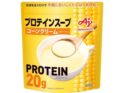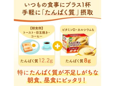 クノールの粉末スープシリーズで「コーンクリーム」味もあり。このスープを添えるだけで、たんぱく質8gもプラスできるとは! コスパも抜群