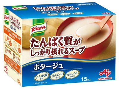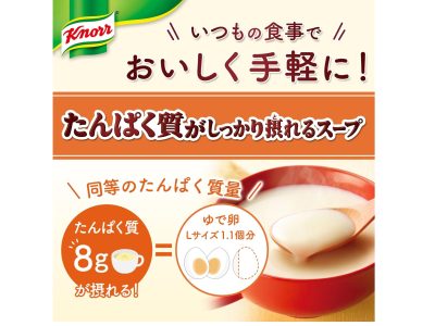 おなじみ「クノールのインスタントスープ」だから、違和感なし! 1袋あたりたんぱく質8gの「ポタージュ」味。ビタミンD、カルシウムも摂れる♪