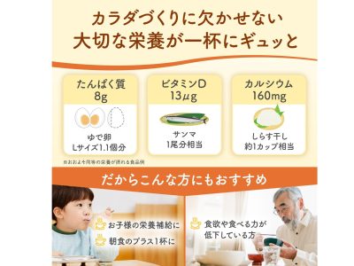 ・献立のたんぱく質量をいちいち考えずに、とりあえず「これ飲んどけば目標クリア」!